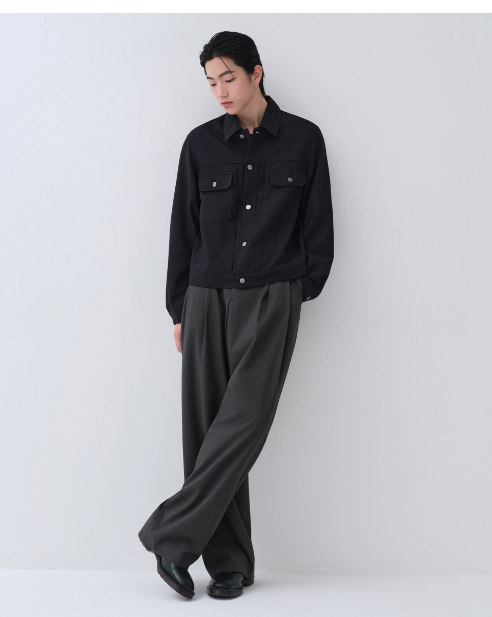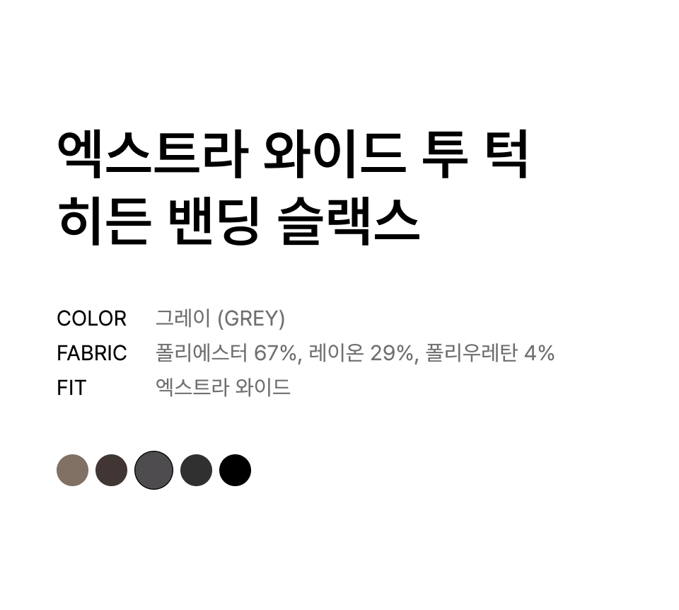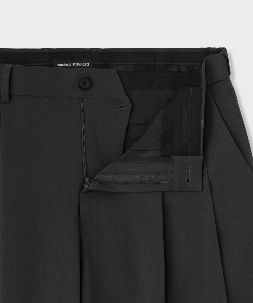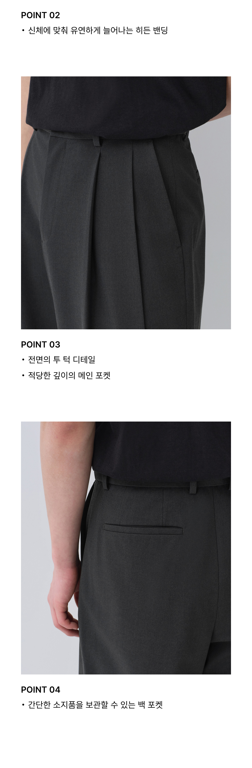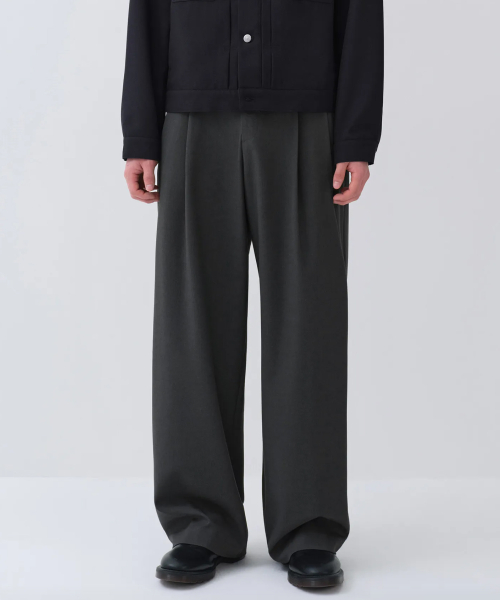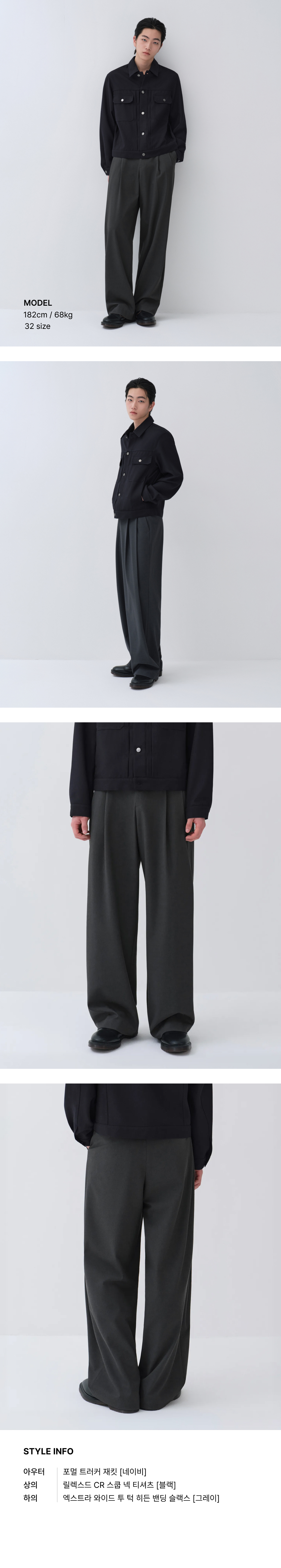 엑스트라 와이드 투 턱 히든 밴딩 슬랙스 [그레이]