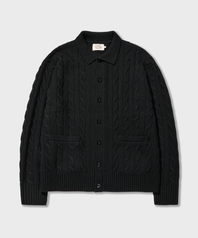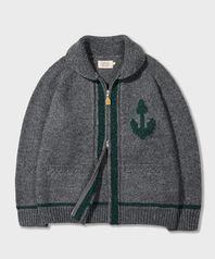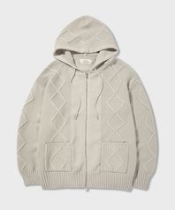 볼드 케이블 코튼 니트 집업 후디 그레이
