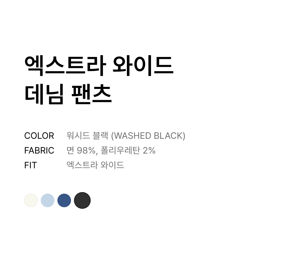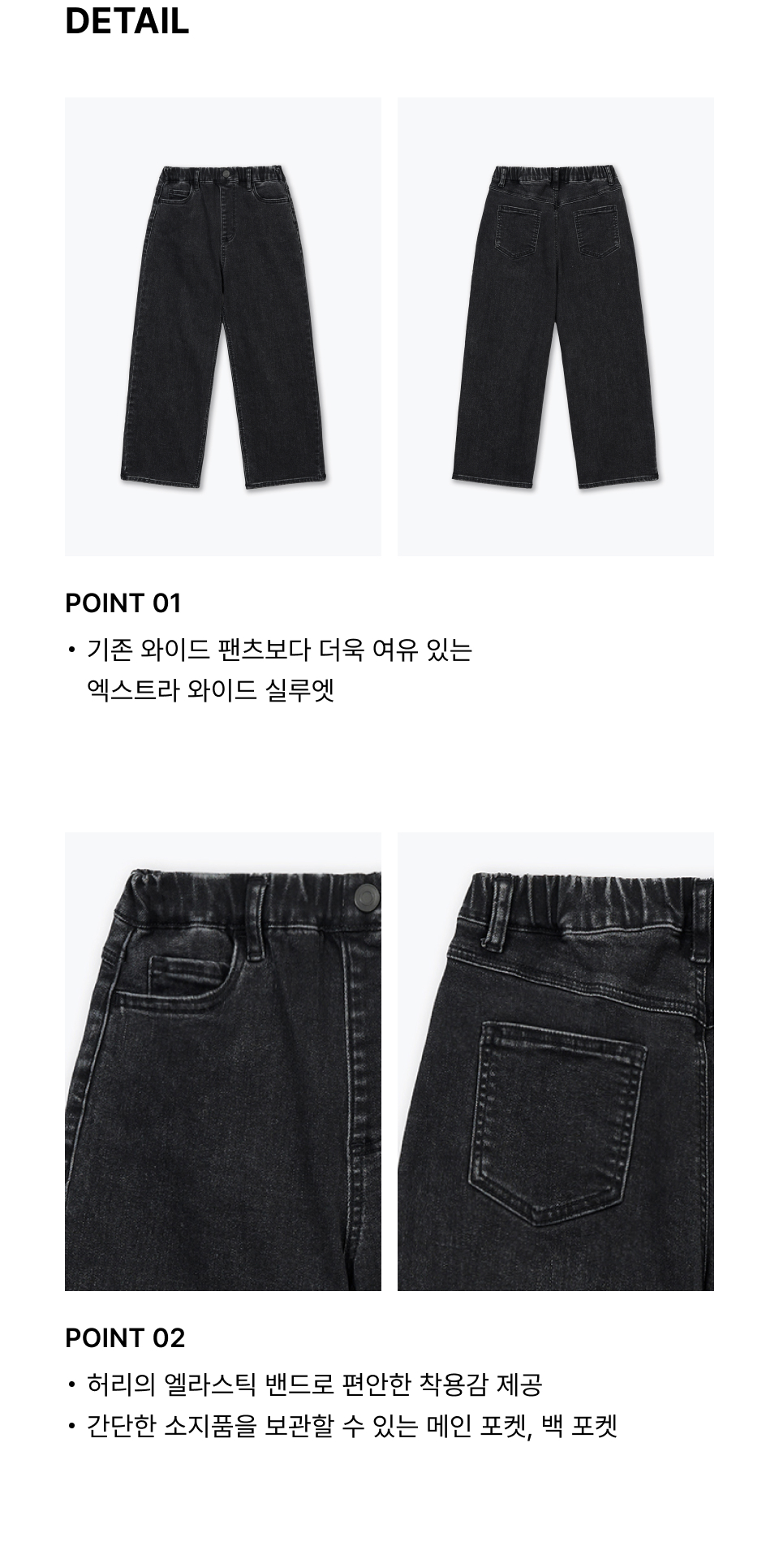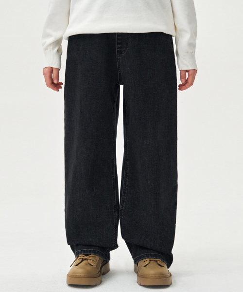 엑스트라 와이드 데님 팬츠 [워시드 블랙]