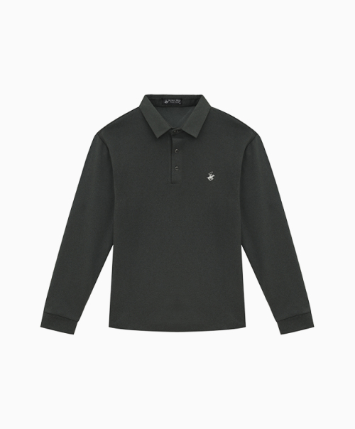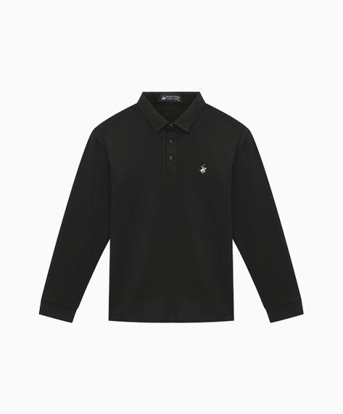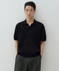 워셔블 수피마 코튼 슬릿 넥 니티드 폴로 셔츠 [블랙]
