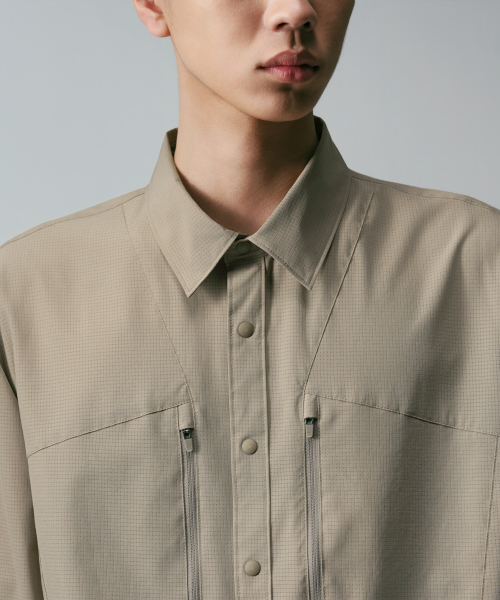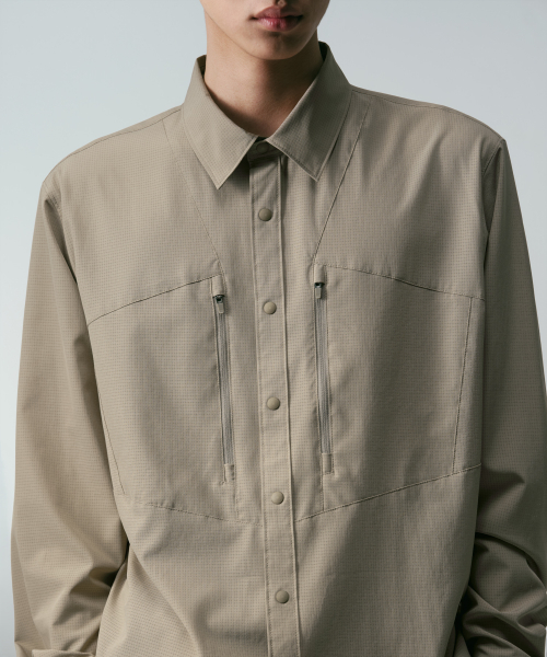 [시티 레저] 에어리 도트 유틸리티 셔츠 [그레이쉬 베이지]