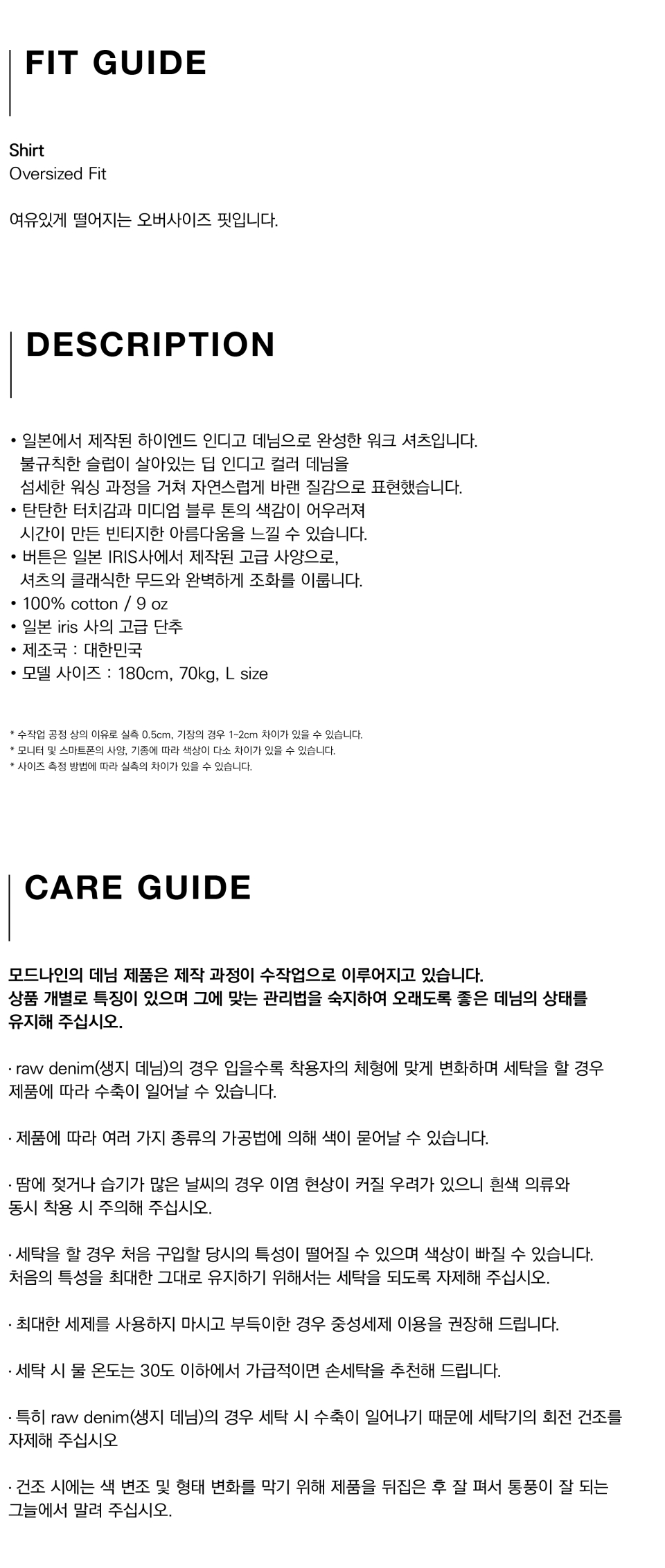 모드나인(MODNINE)은 2006년 론칭한 데님 전문 브랜드로, 시작부터 현재까지 데님만을 다루어 왔고 깊이 있는 데님 제품을 만들고 있습니다. 데님은 시간이 지날수록 색감이 깊어지고 디테일이 드러나기 때문에, 원단과 리벳, 버튼 등 데님을 구성하는 모든 것들에서 퀄리티에 대해 타협하지 않는 것이 모드나인의 유일한 원칙입니다.