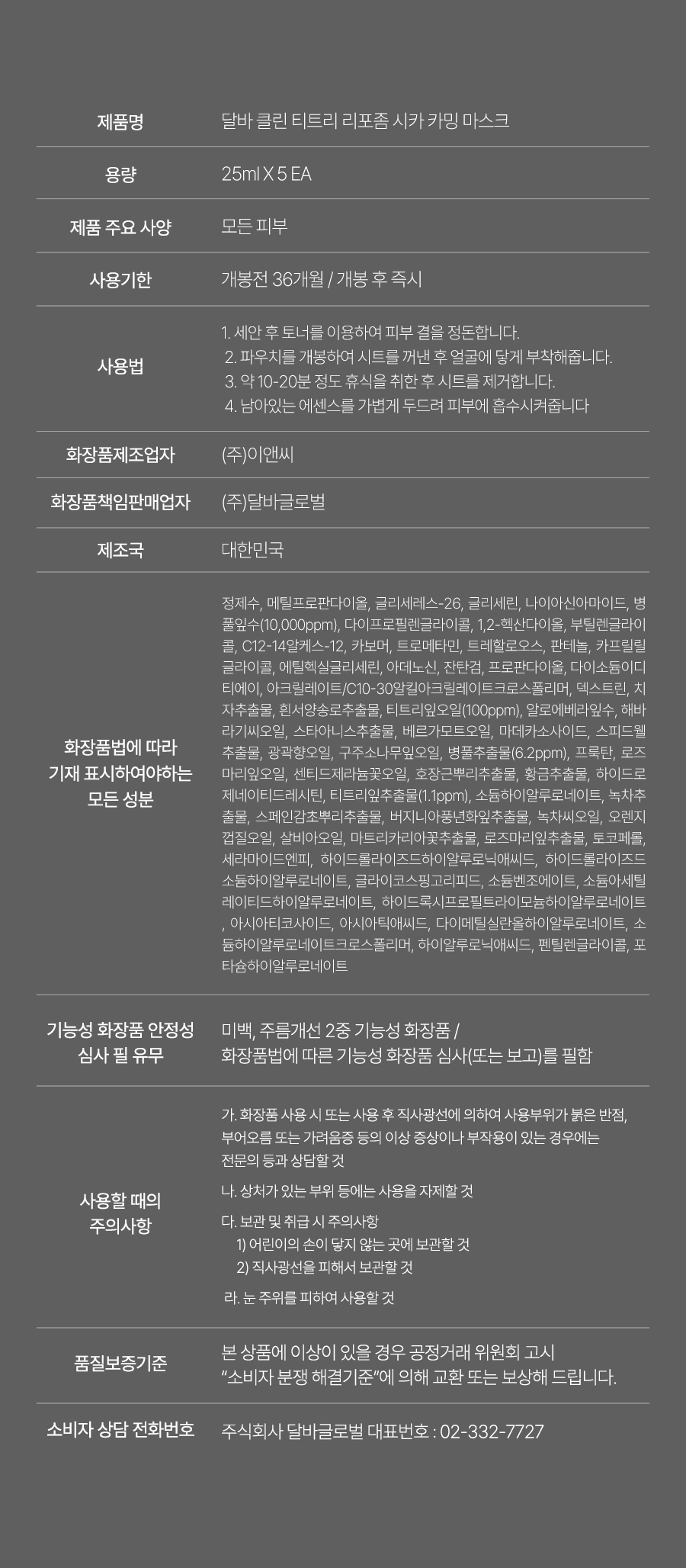 클린 티트리 리포좀 시카 카밍 마스크 4BOX (20매입)