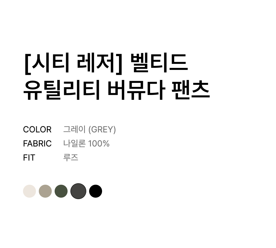 [시티 레저] 벨티드 유틸리티 버뮤다 팬츠 [그레이]