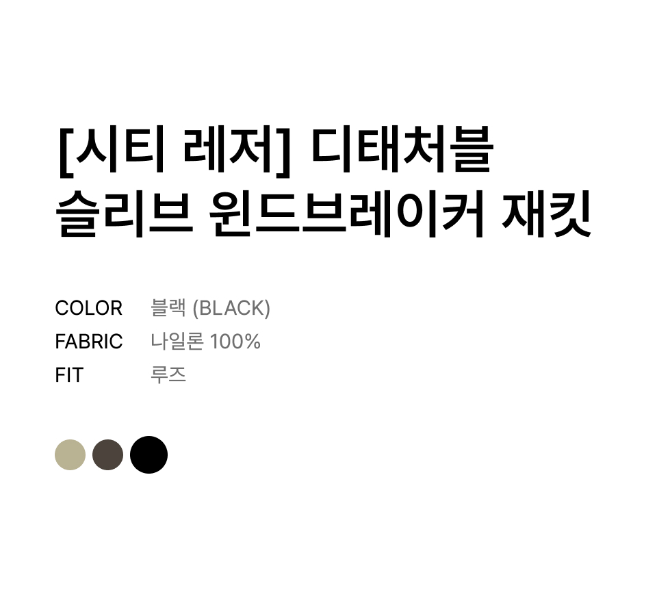 [시티 레저] 디태처블 슬리브 윈드브레이커 재킷 [블랙]