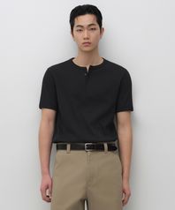 리브드 머슬 핏 헨리 넥 티셔츠 [블랙]