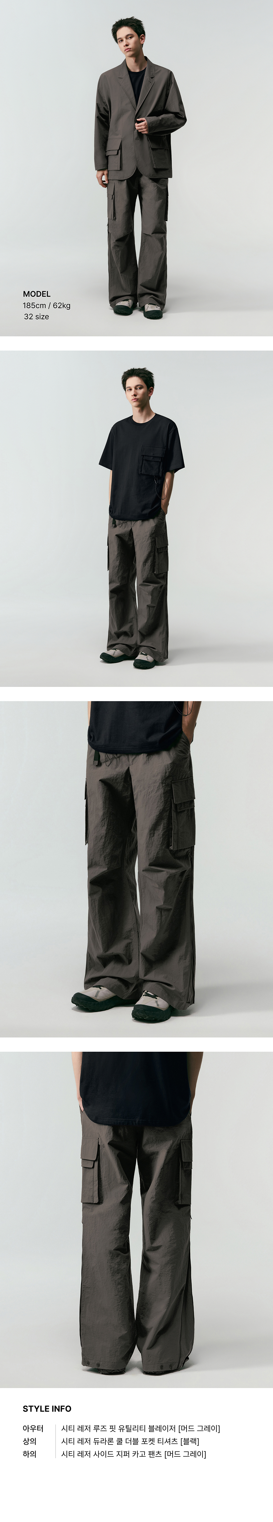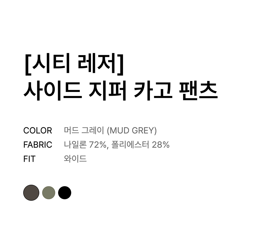 [시티 레저] 사이드 지퍼 카고 팬츠 [머드 그레이]