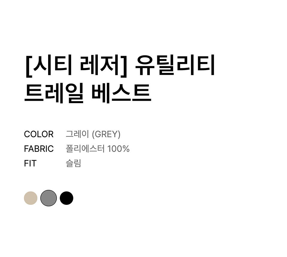 [시티 레저] 유틸리티 트레일 베스트 [그레이]