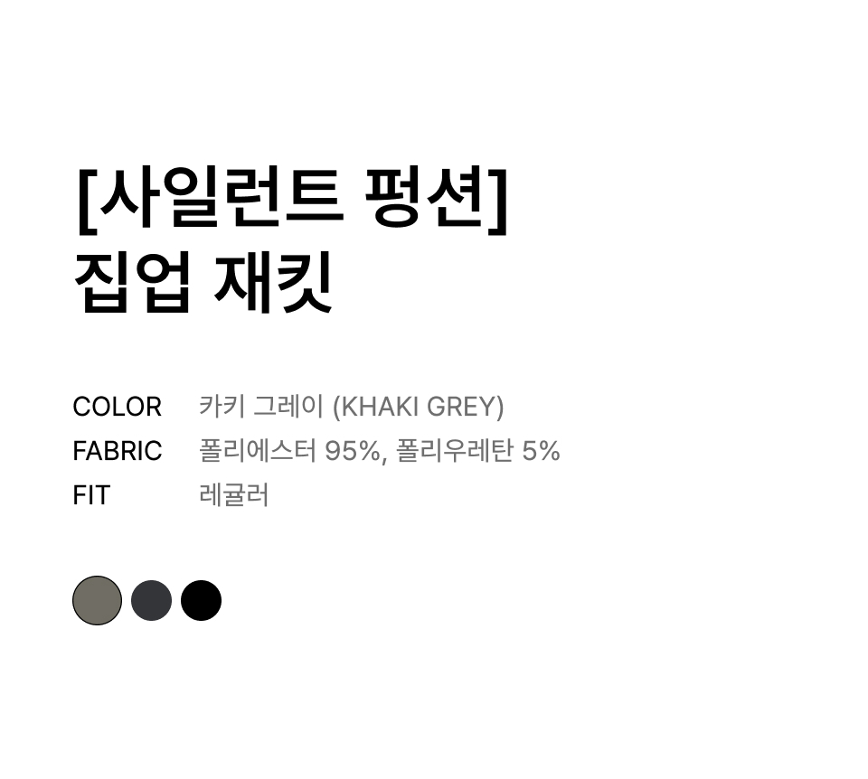 [사일런트 펑션] 집업 재킷 [카키 그레이]