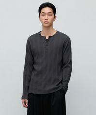 멀티 리브드 헨리 넥 긴소매 티셔츠 [건메탈]