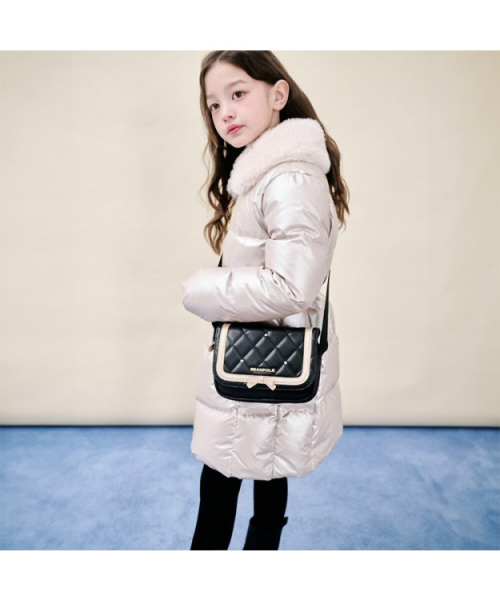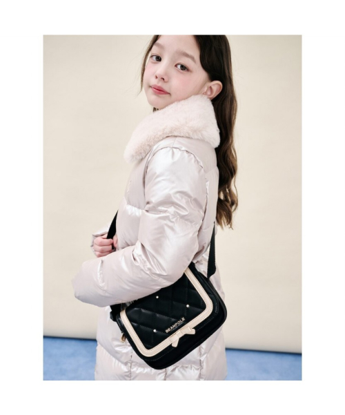 고급스러운 퀼팅 디자인이 돋보이는 여아용 크로스백입니다. 리본 장식으로 사랑스러운 포인트를 더했습니다. 간단한 소지품 보관에 용이하며, 소풍이나 데일리 가방으로 활용하기 좋은 아이템입니다. ※ 사이즈 15X19X5cm(가로X세로X폭) / 무게 210g 빈폴키즈는 아이가 안심하고 입을 수 있는 옷을 만들기 위해 원단부터 완제품까지 철저한 '아동 유해성 안전 검사'를 진행하고 있습니다.