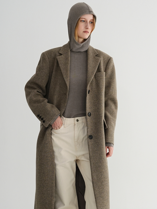 맥시한 기장의 오버핏이 포인트인 싱글 맥시 울 코트입니다.
