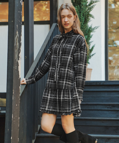 [2컬러] 체크 셔츠 원피스