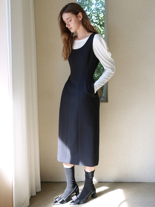 인기상품인 미니드레스의 미디 기장 버전의 드레스입니다.