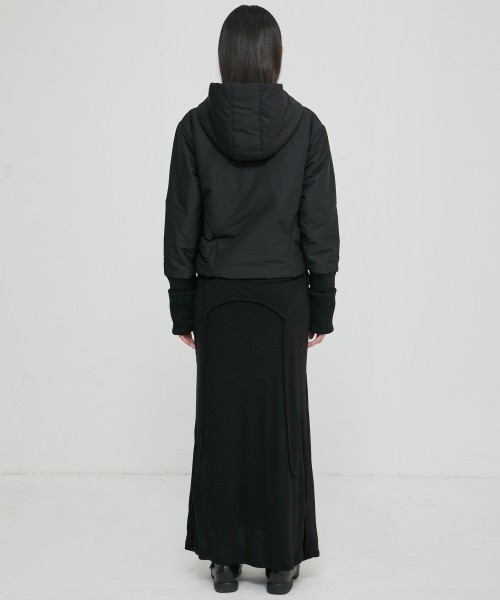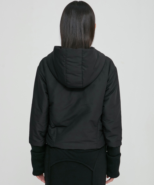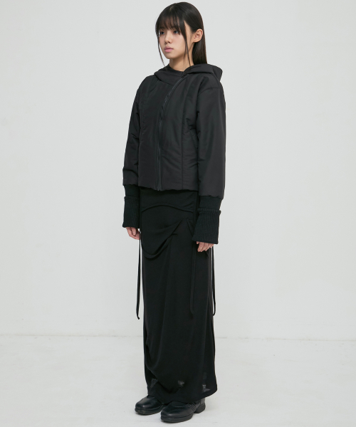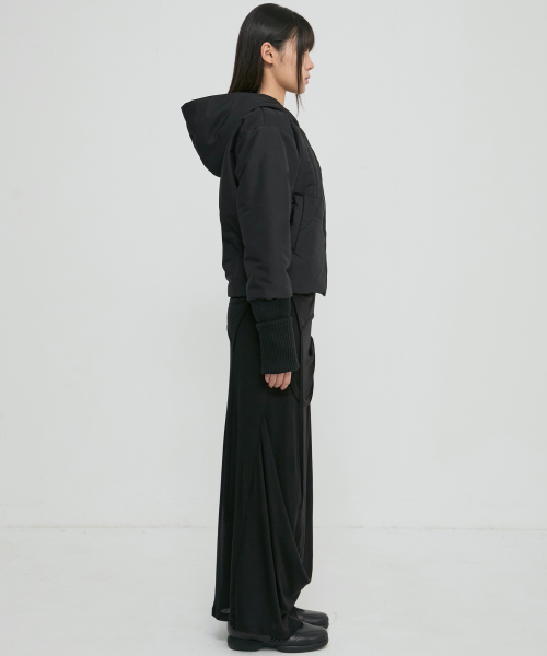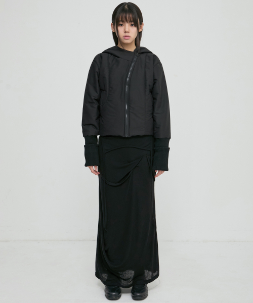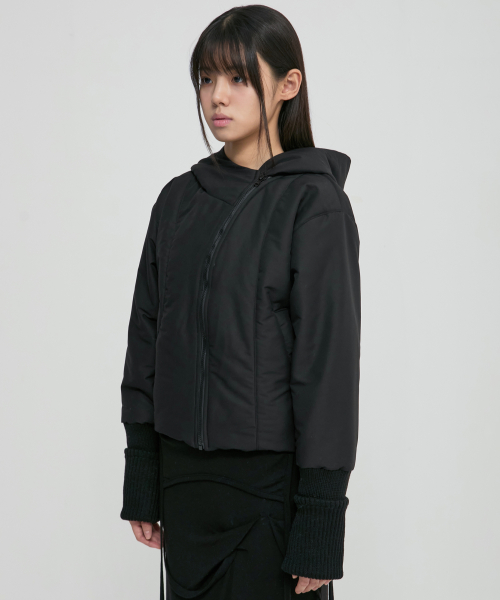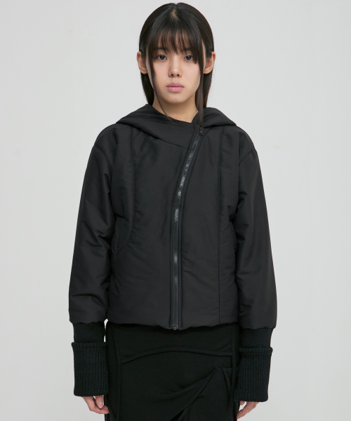 Hooded Asymmetrical Puffer Jacket (FL-053_Black)