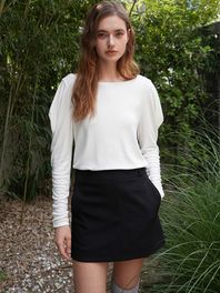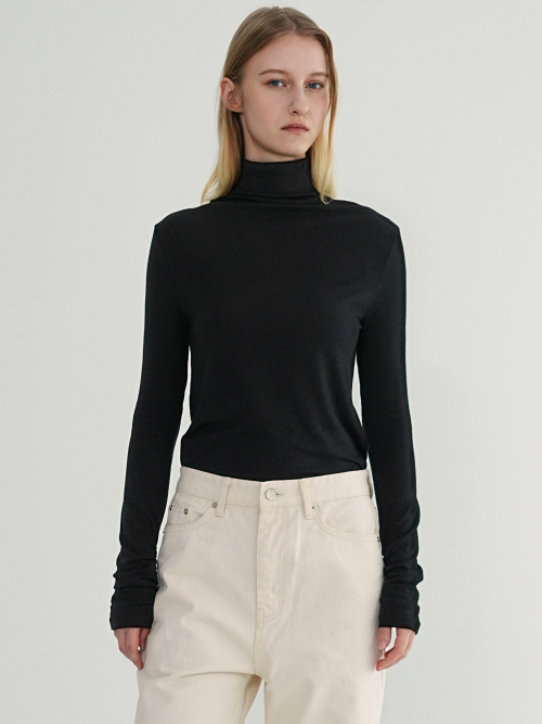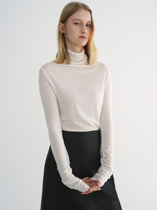 HIGH NECK WOOL SHIRRING TEE