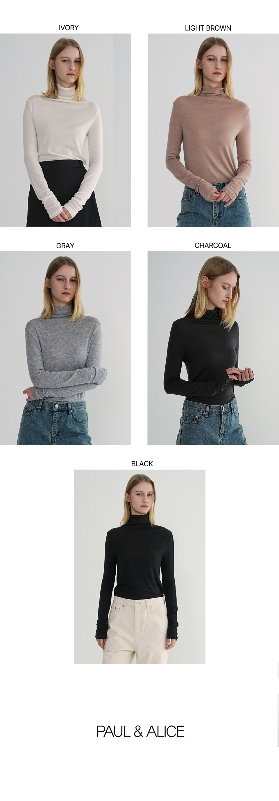 반목 높이의 터틀넥은 착용하기 편하며