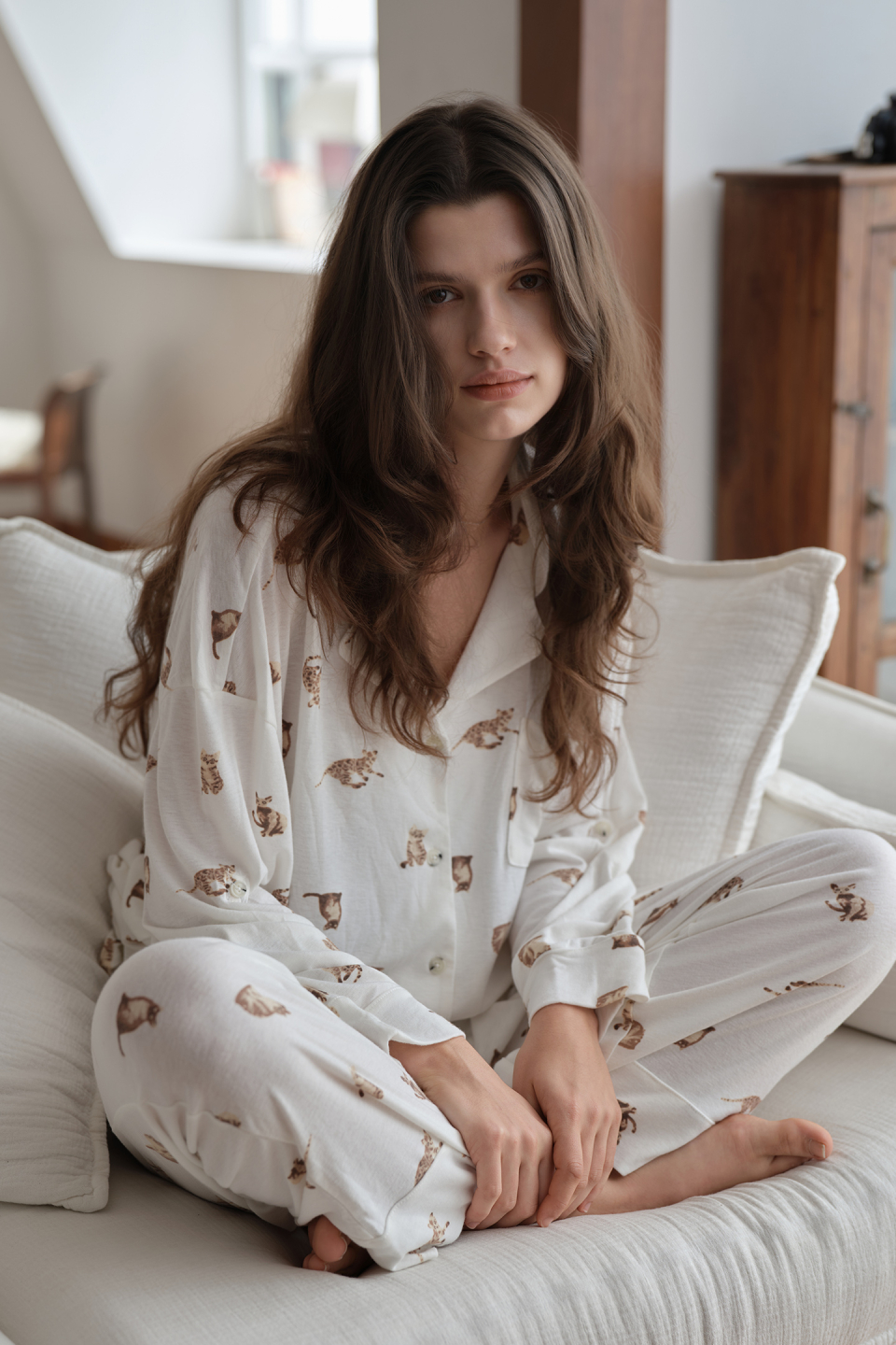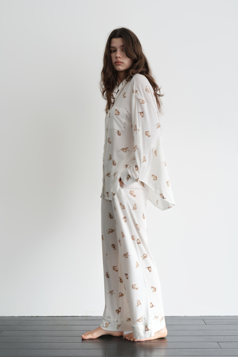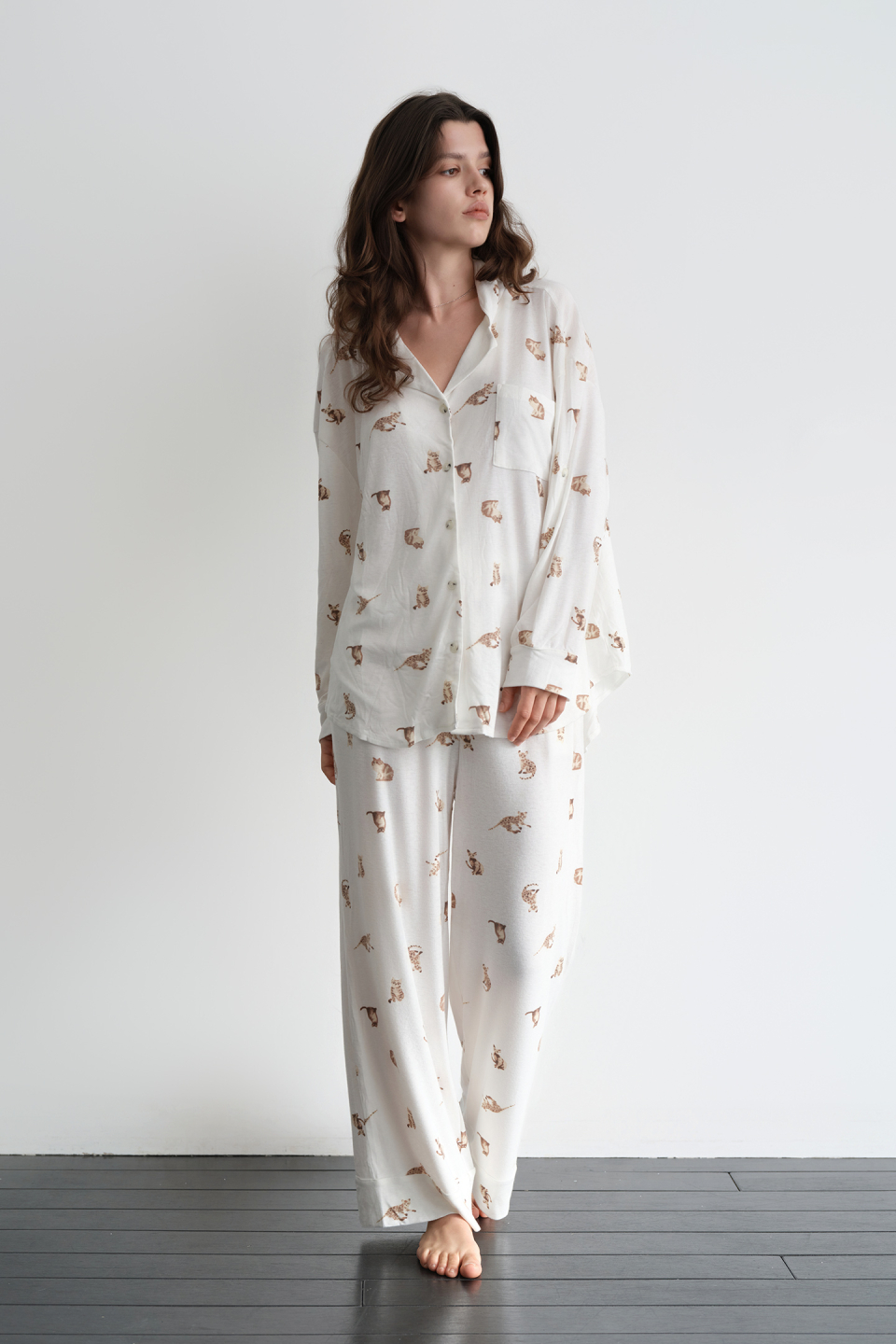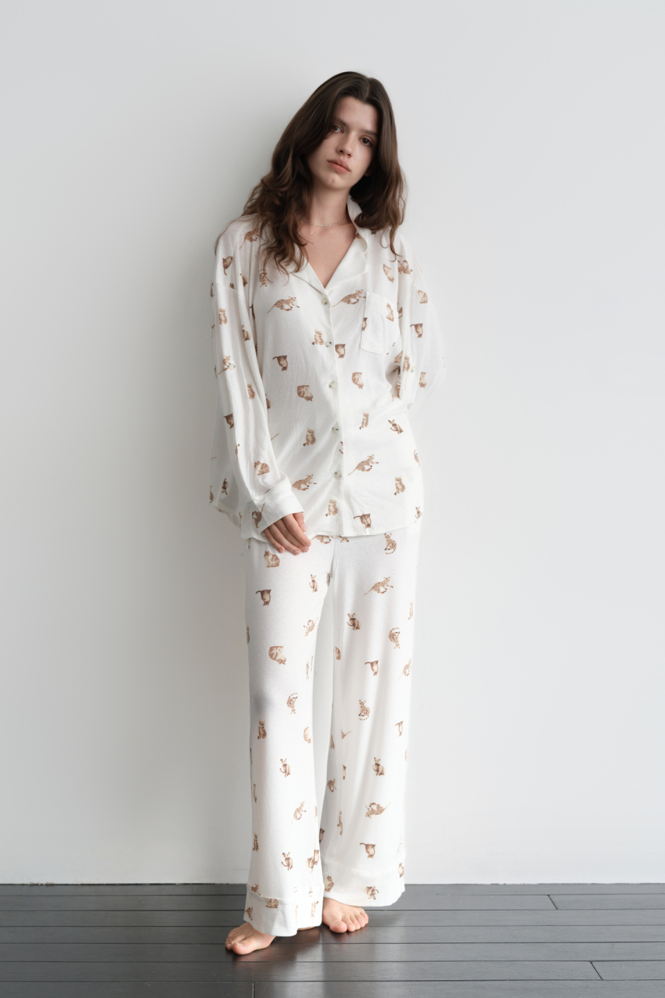 루즈 캣 파자마 세트