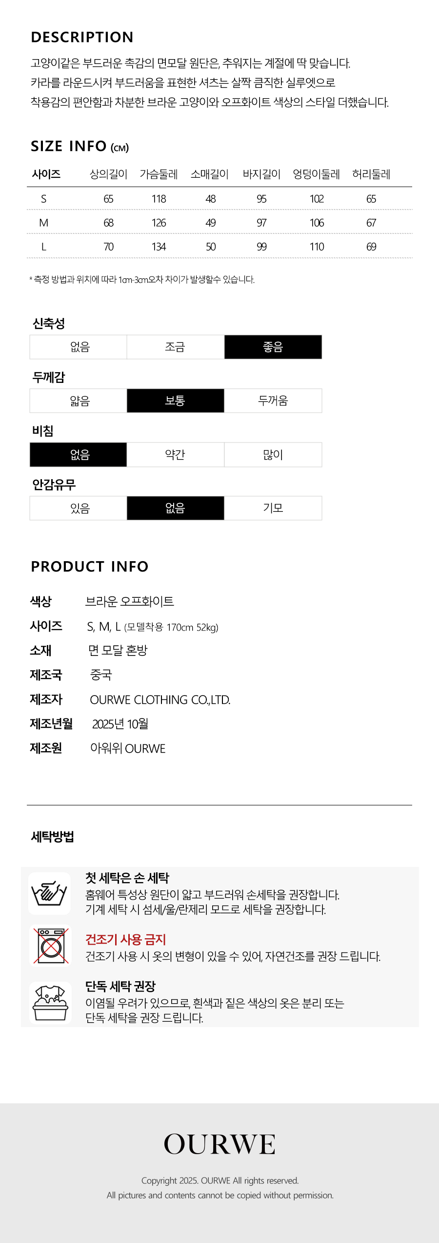 아워위(OURWE)는 일상 전반을 풍성하게 만드는 용품에 초점을 맞추고 실내 생활에 영향을 주는 것을 만들고, 소개하는 브랜드입니다. 편안한 공간에서 진정으로 좋아하는 방식으로 시간을 보내는 것이 삶에서 가장 중요한 것이고, 무엇이 이를 가능케 할지 고민하는 것부터 모든 여정을 시작합니다. 설계 과정까지 모두 내부의 스튜디오에서 이루어지며, 설립자를 비롯한 소수의 파트너와 함께 독립적으로, 충실하게 이어가고 있습니다.