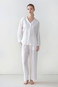 코튼 자수 데일리 와이드 잠옷 팬츠