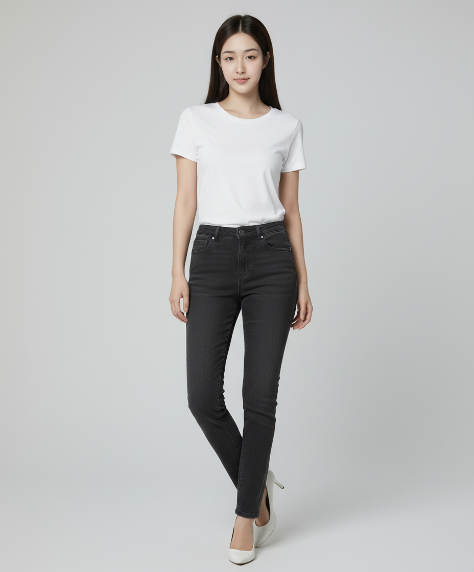 슬림 크롭 데님 팬츠 [블랙] 32