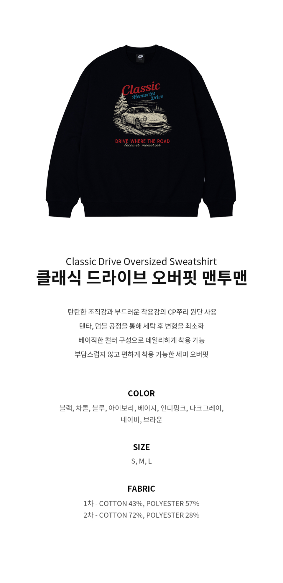 클래식 드라이브 오버핏 맨투맨_9 COL