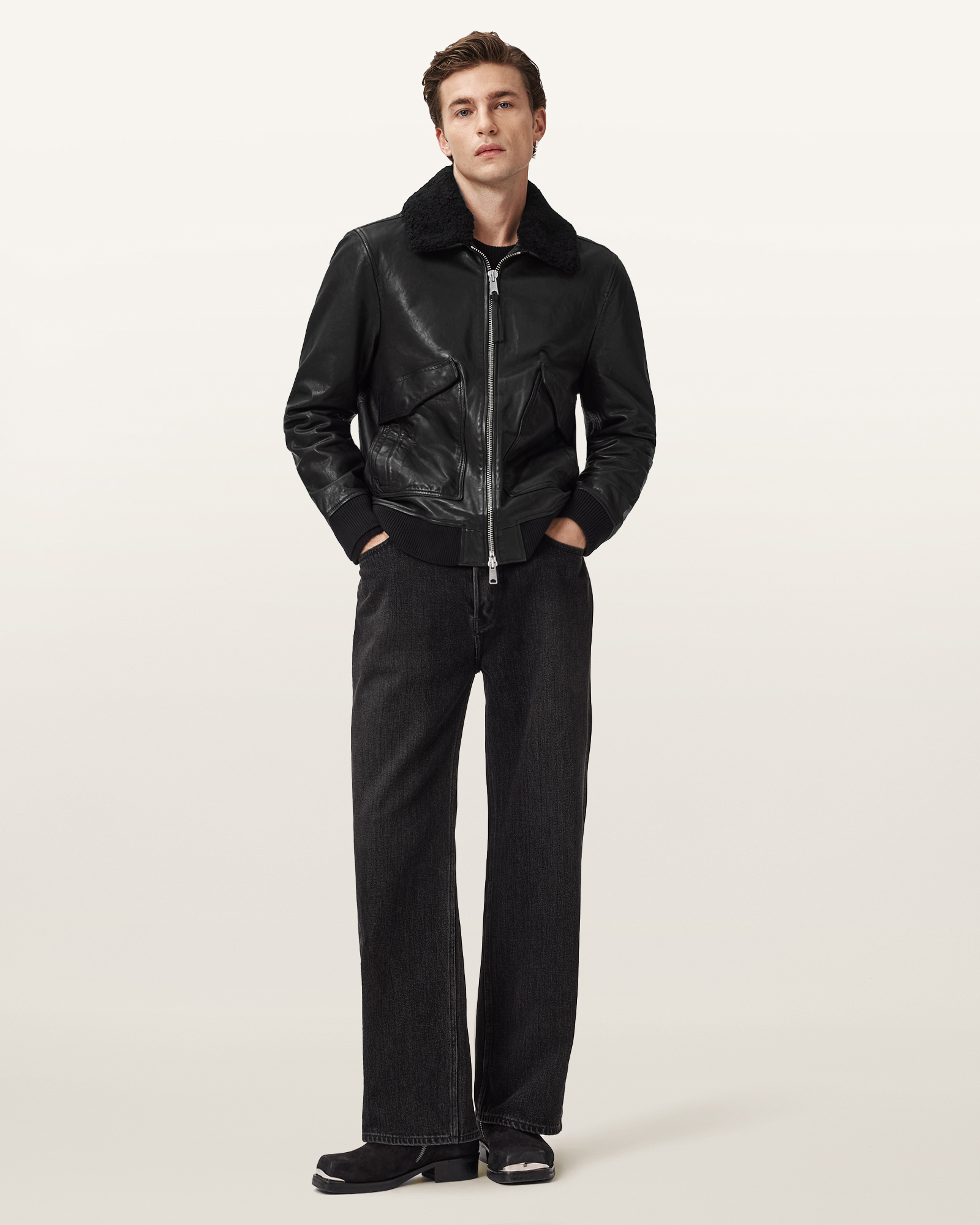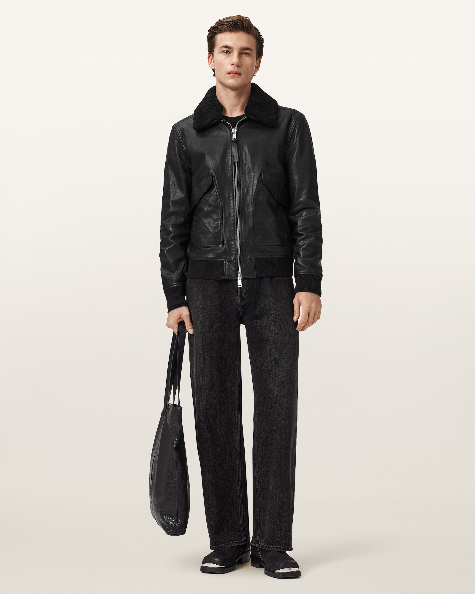 o 올세인츠 가죽 제품은 Leather Working Group이 인증한 책임감 있는 제조 방식으로 만들어집니다.