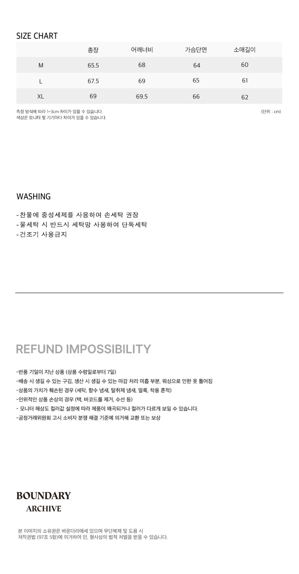 바운더리(BOUNDARY)는 현대인의 바쁜 일상 속에서도 놓칠 수 없는 깔끔한 실루엣과 색감 중심의 스타일을 추구하는 타임리스 브랜드입니다.