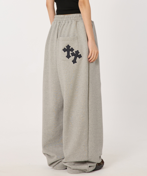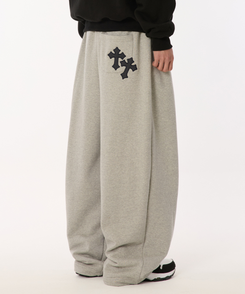 트윈 크로스 백 패치 롱 스웨트 팬츠 [그레이]