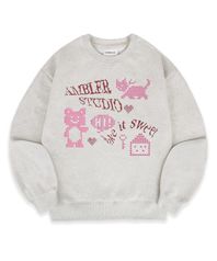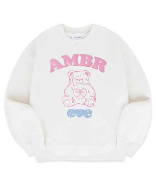 Lovely bear자수 맨투맨 티셔츠 AMM1324 (아이보리)