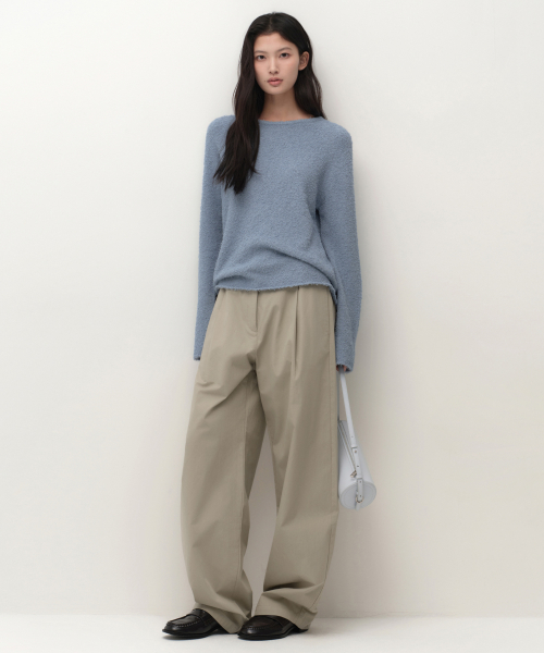 우먼즈 플러피 보트 넥 니트 [스카이 블루]