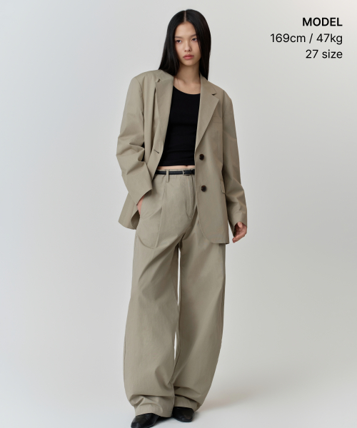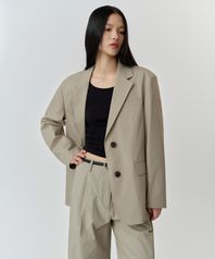 우먼즈 워시드 코튼 오버사이즈 블레이저 [카키 베이지]