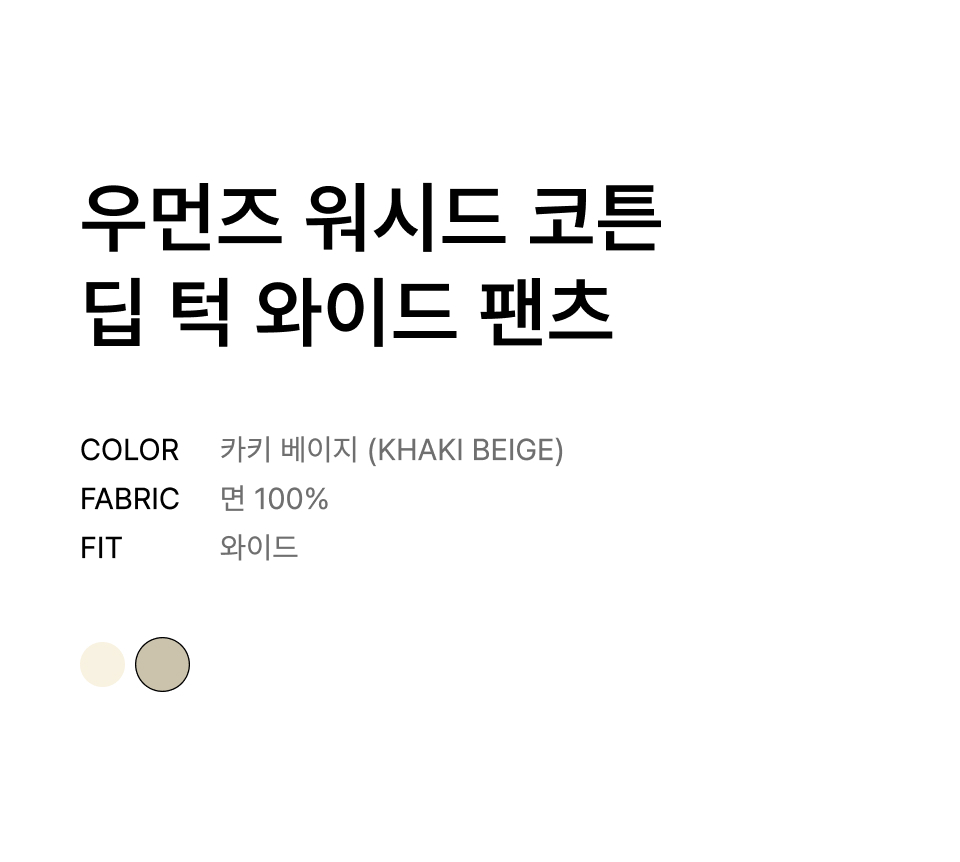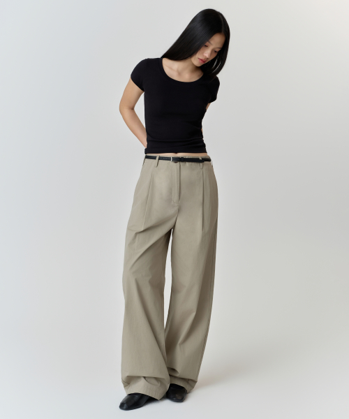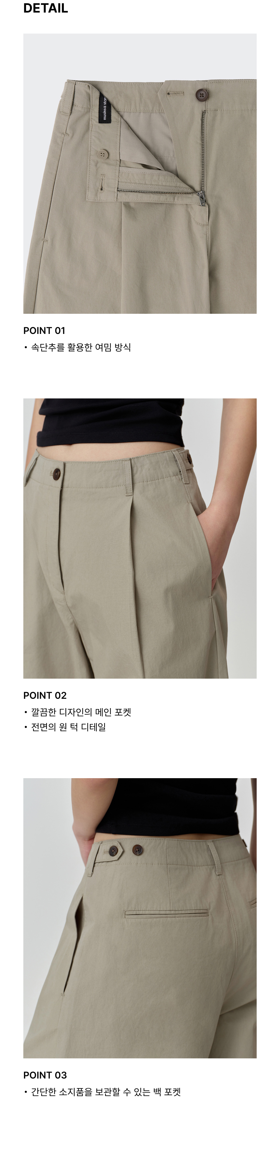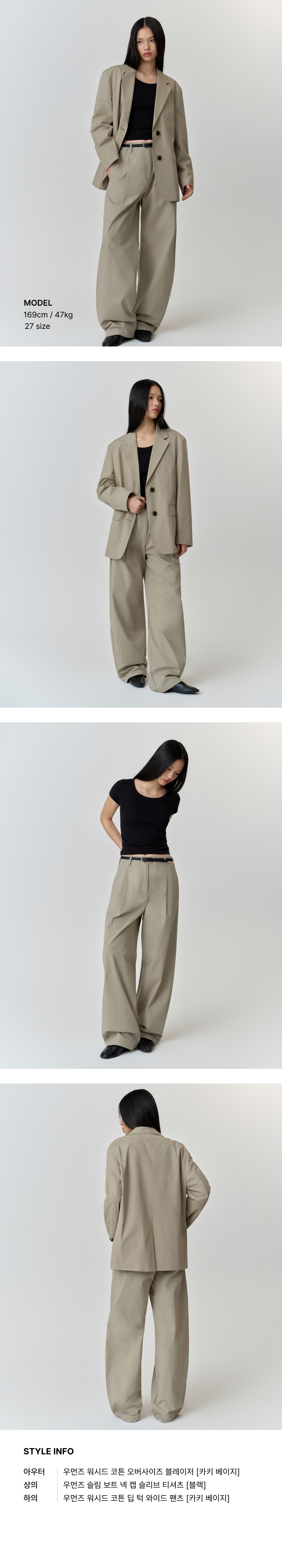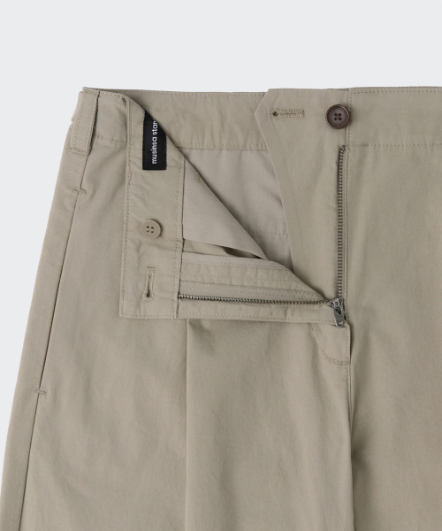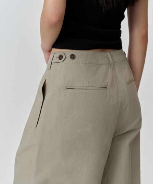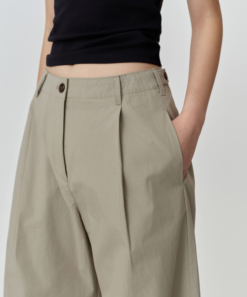 우먼즈 워시드 코튼 딥 턱 와이드 팬츠 [카키 베이지]