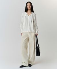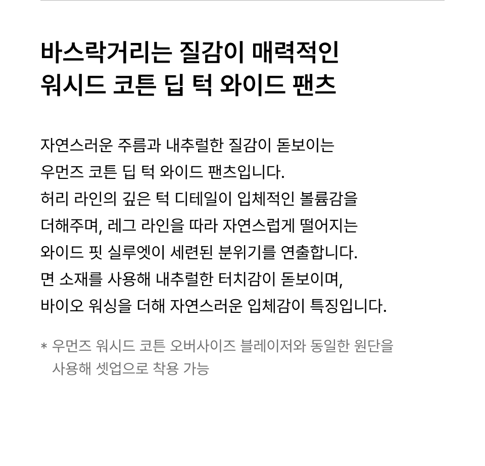 우먼즈 워시드 코튼 딥 턱 와이드 팬츠 [크림]