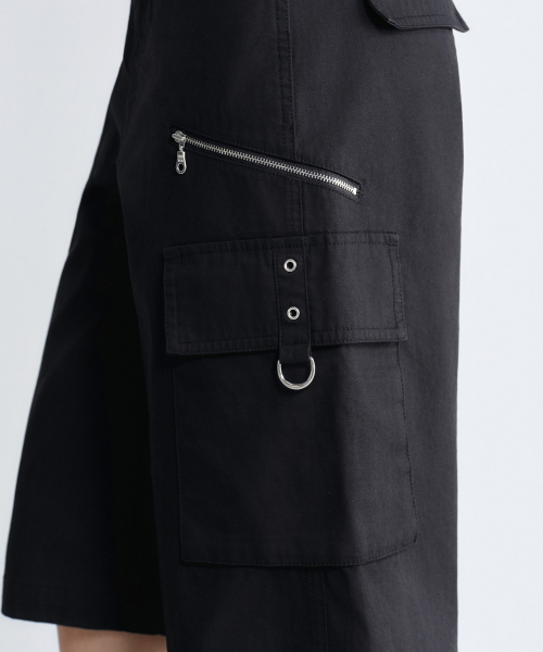 우먼즈 더블 니트 데님 디테일 버뮤다 스웨트 팬츠 [블랙]