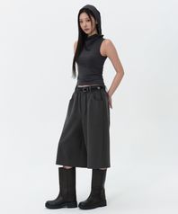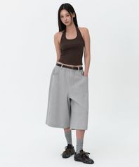 우먼즈 더블 니트 데님 디테일 버뮤다 스웨트 팬츠 [딤 그레이]