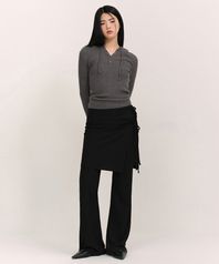 우먼즈 버티컬 텍스처드 랩 스커트 저지 팬츠 [블랙]