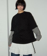 미니 도트 컬러 언발란스 스트라이프 투웨이 레이어드 티셔츠 [블랙]