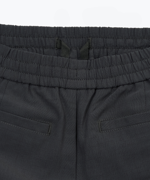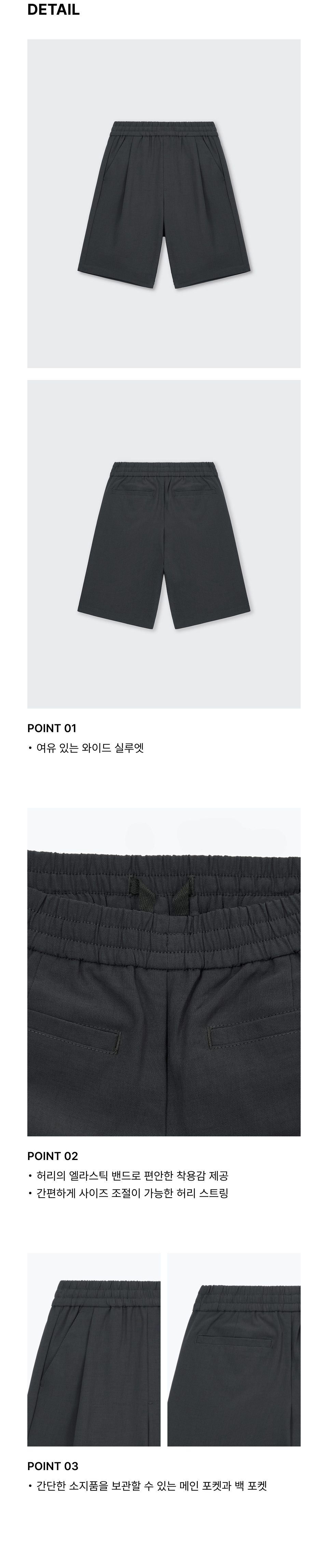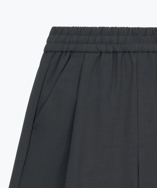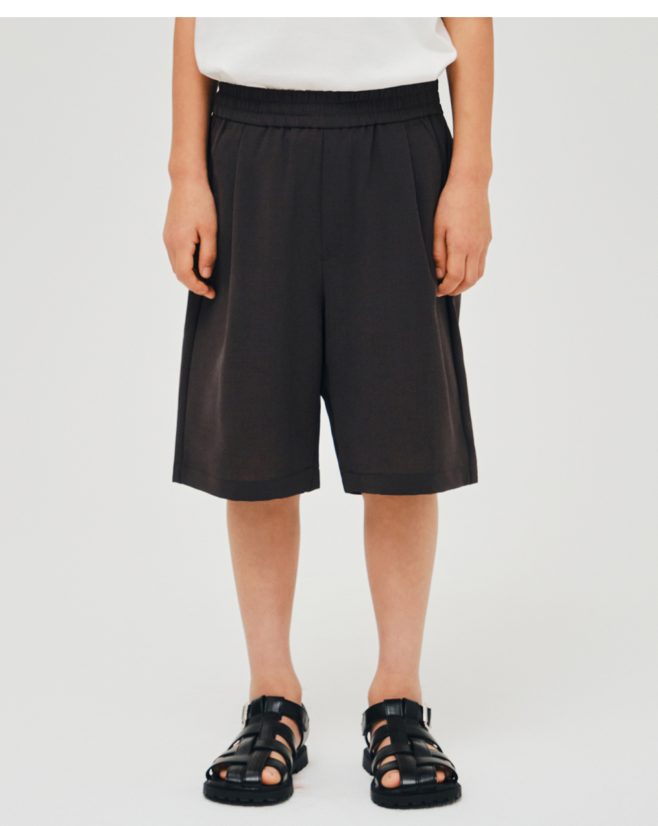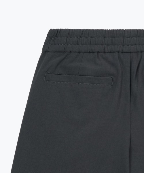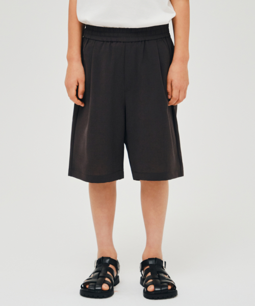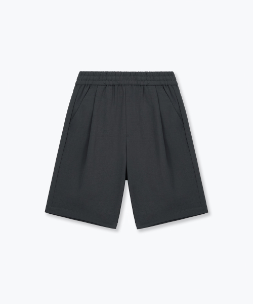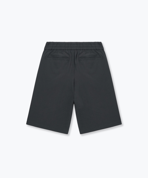 린넨 라이크 원 턱 와이드 밴딩 쇼츠 [다크 그레이]