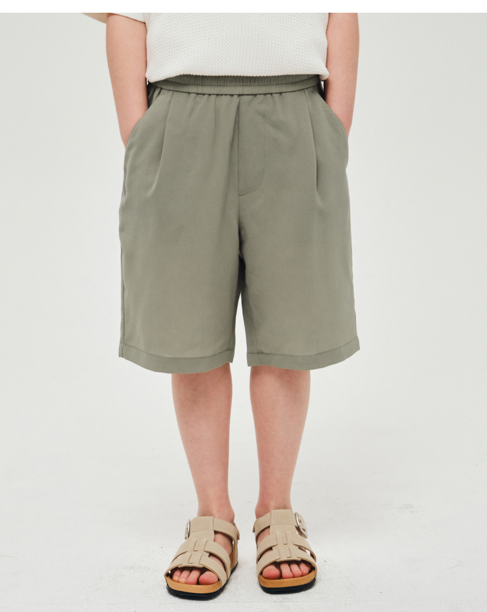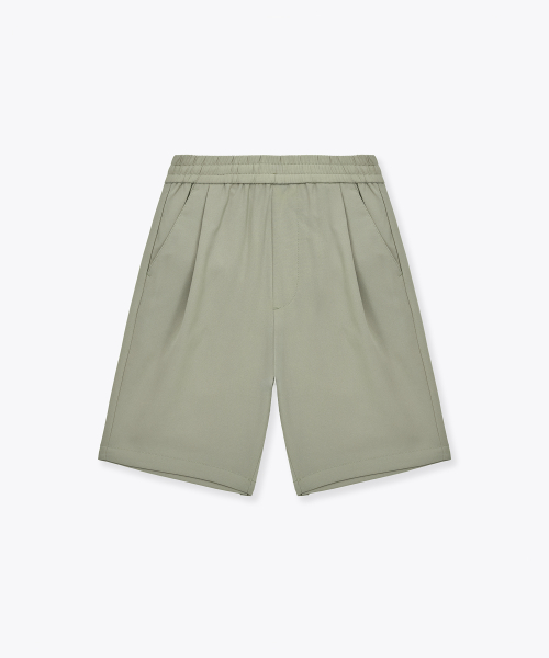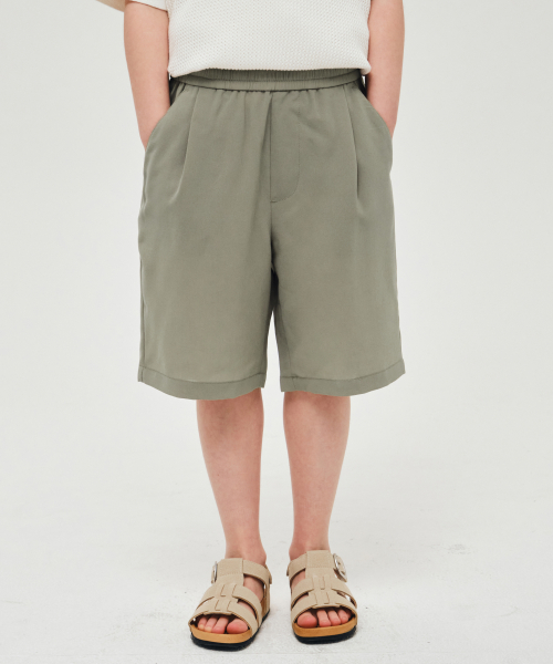 린넨 라이크 원 턱 와이드 밴딩 쇼츠 [그레이쉬 베이지]