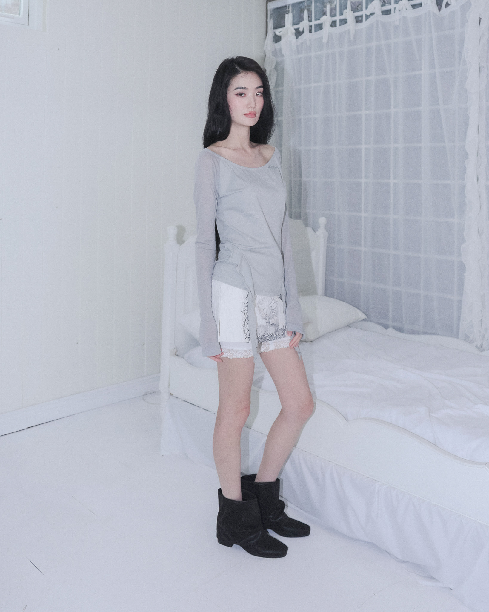 릴리 프릴 티셔츠 [민트그레이]