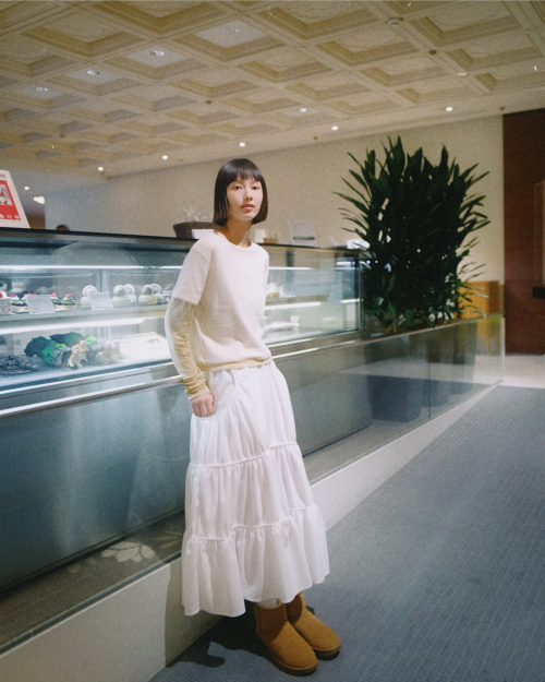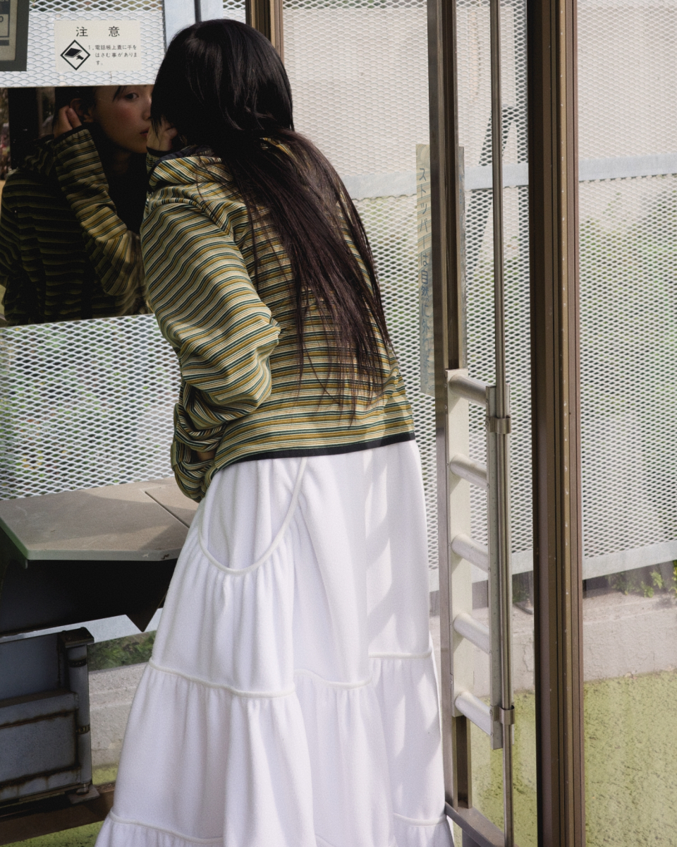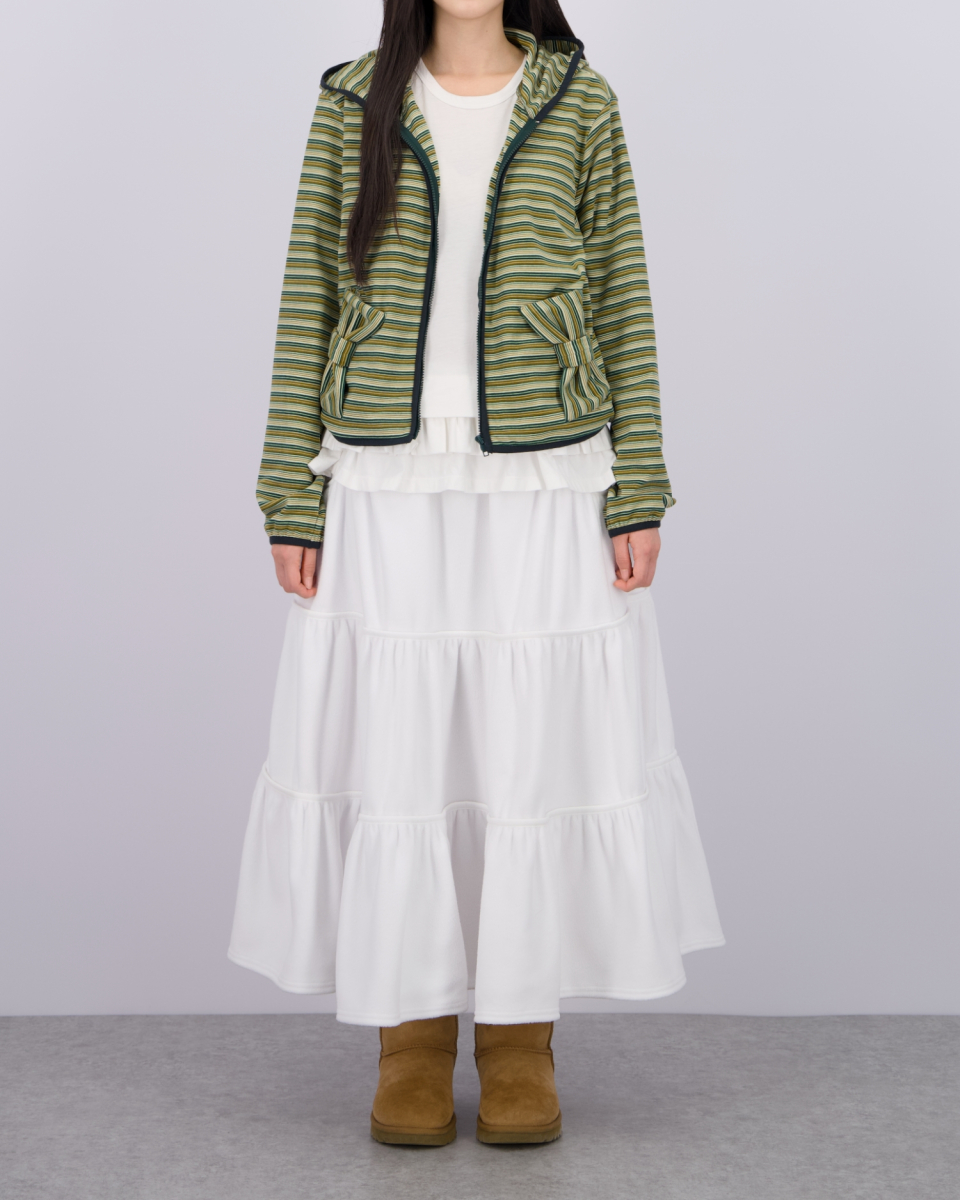FLEECE LOOSE POCKET TIERD SKIRT_WHITE