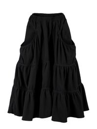 FLEECE LOOSE POCKET TIERD SKIRT_BLACK