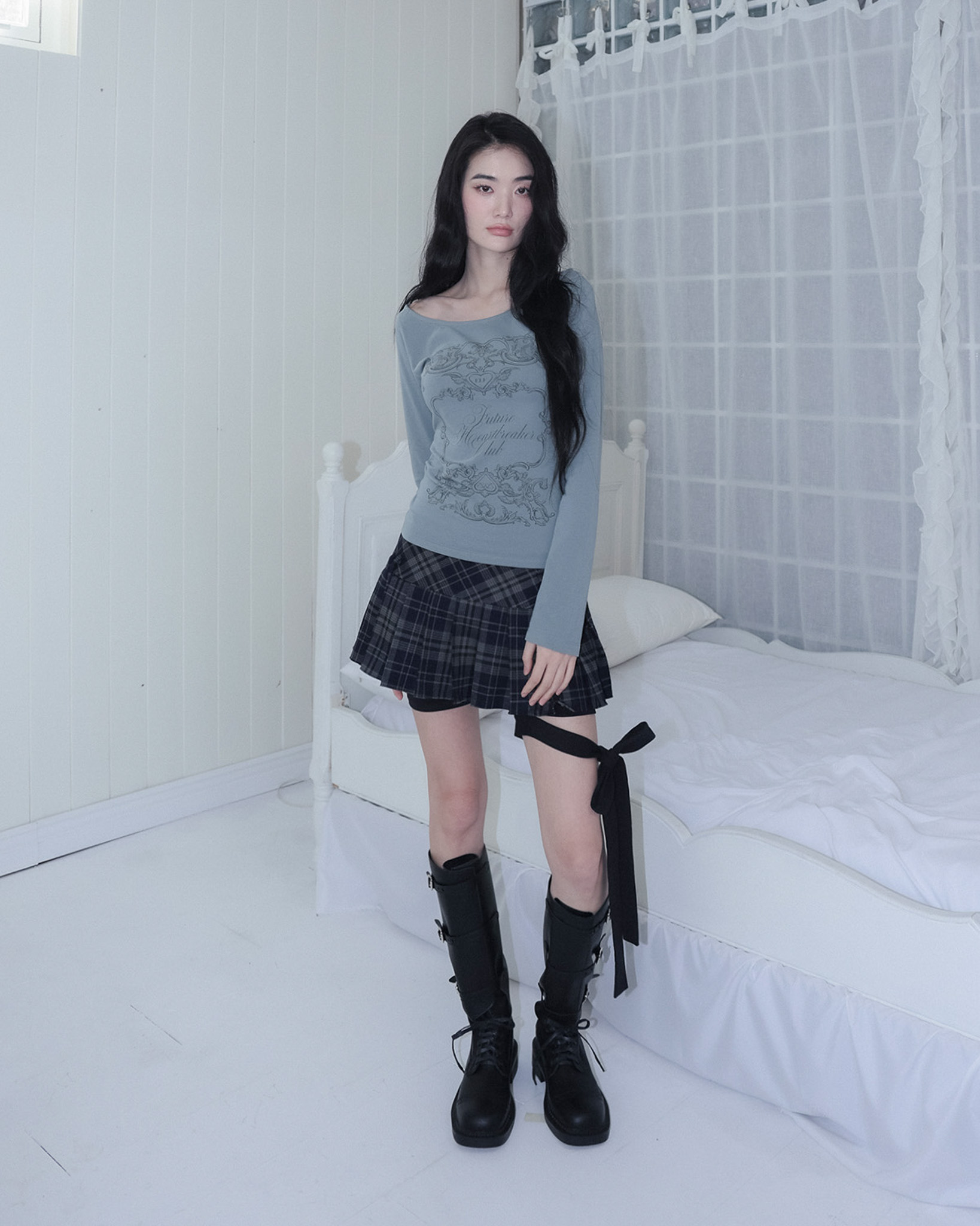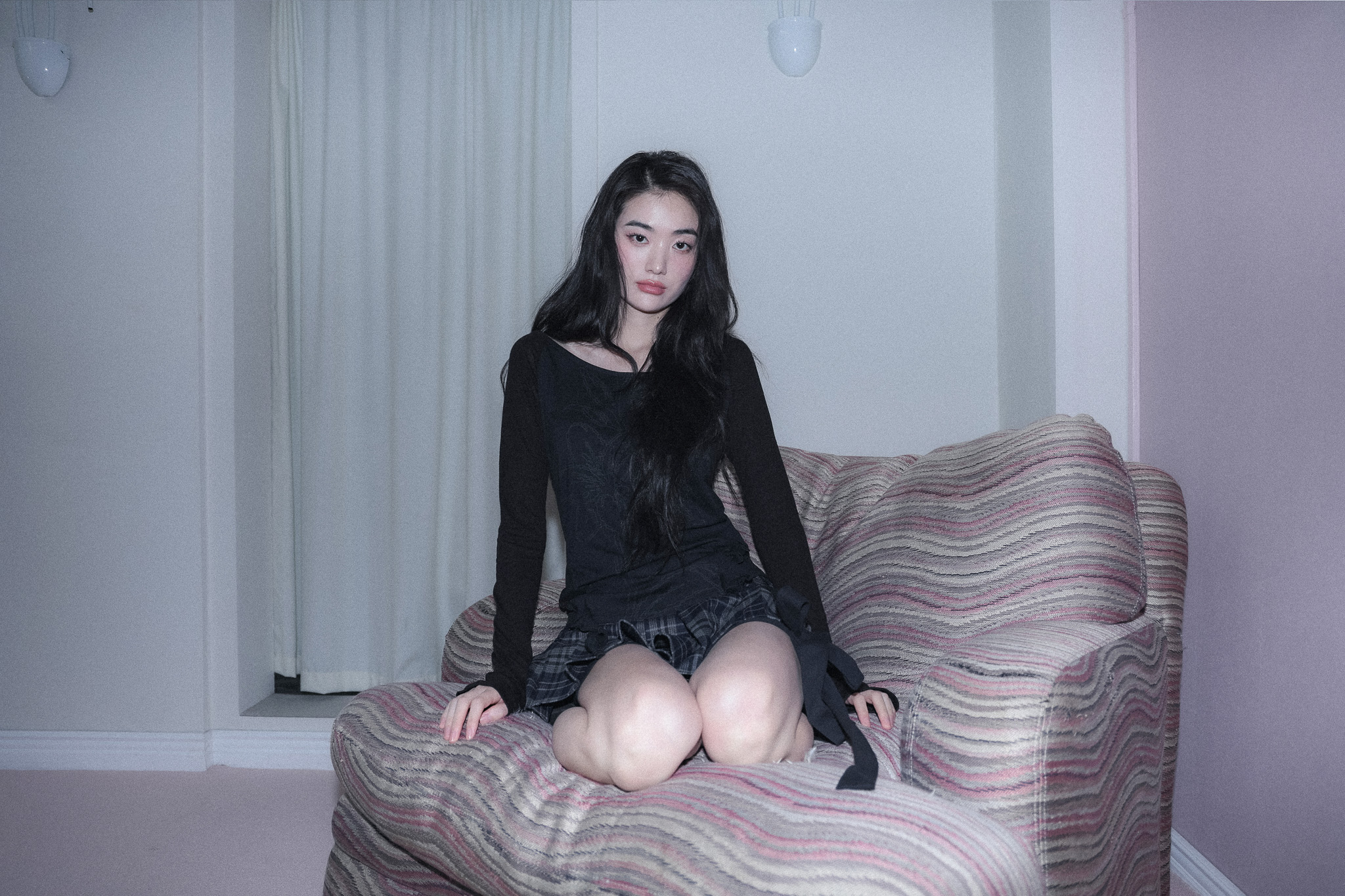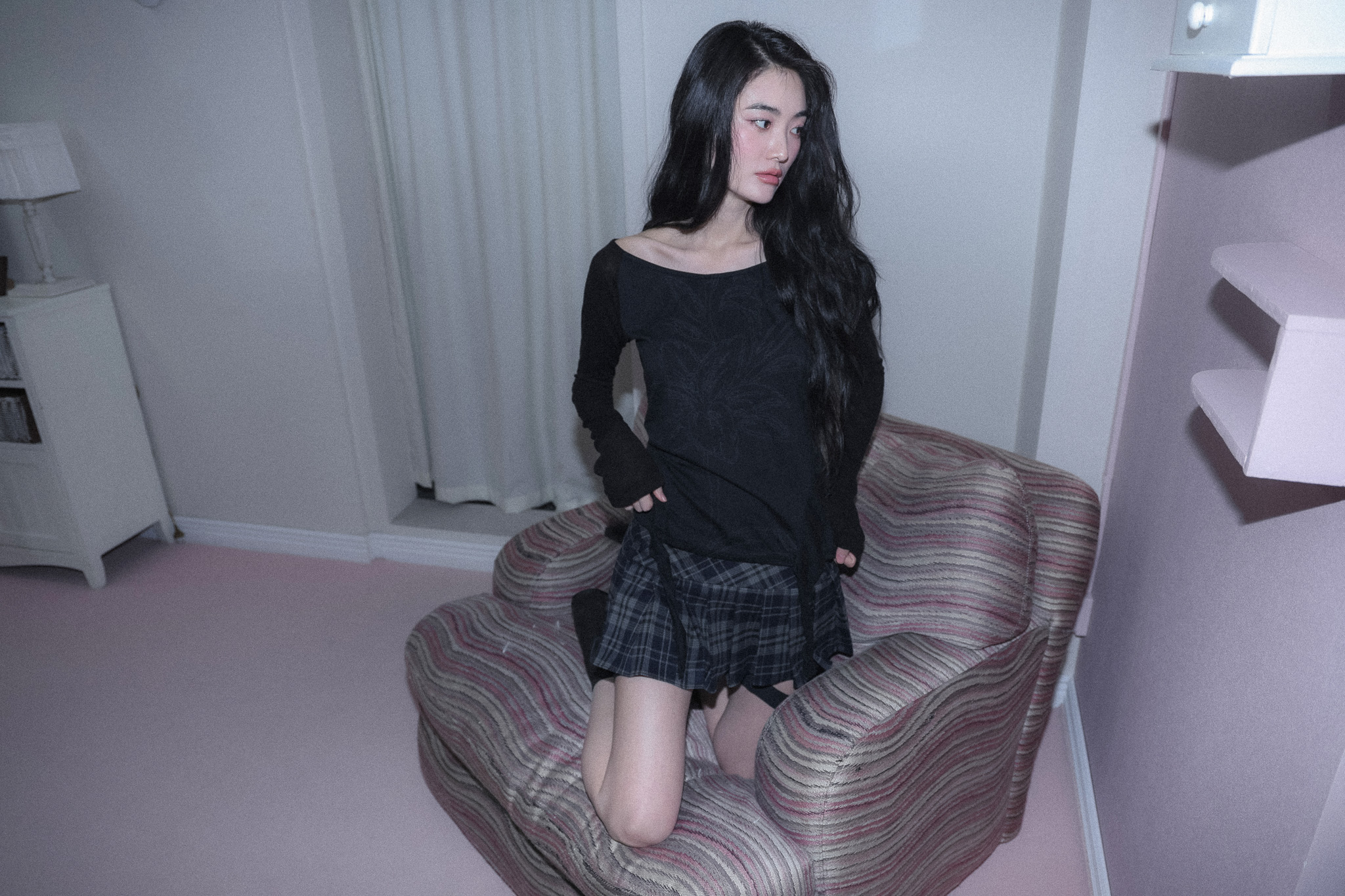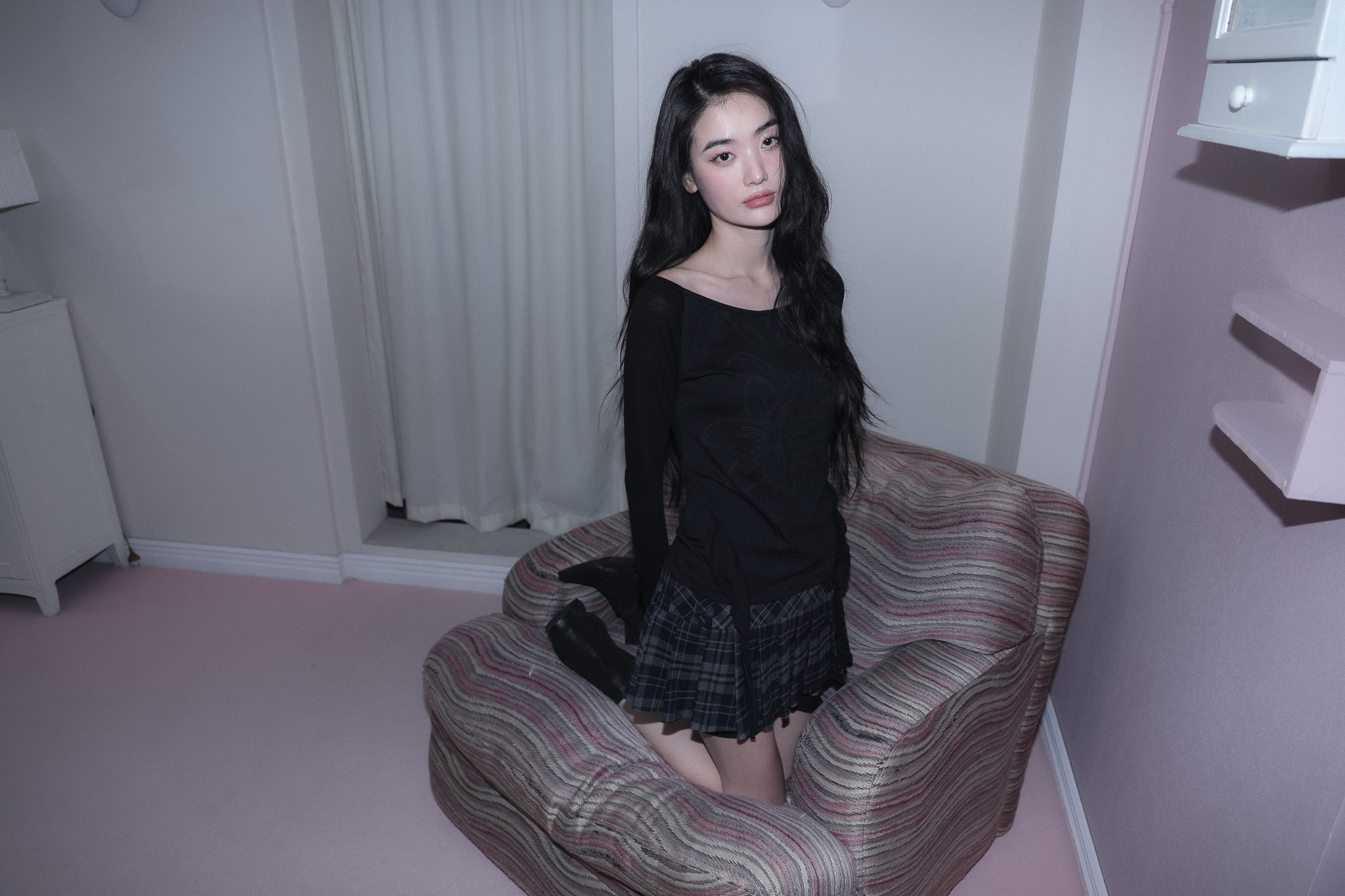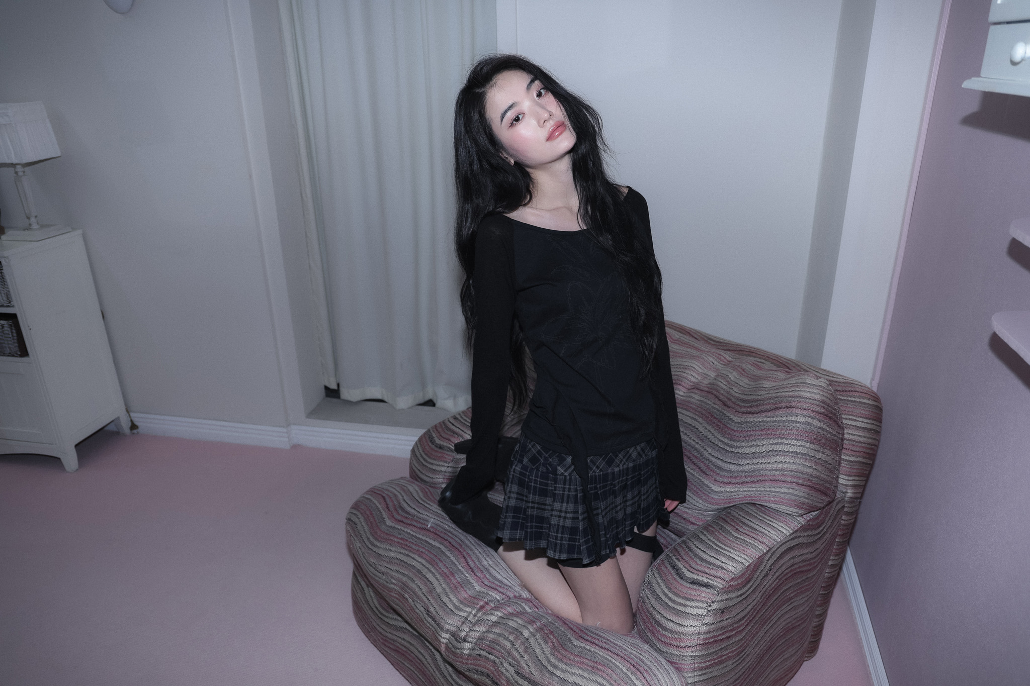 MATERIAL1 - P67 R30 PU3 MATERIAL2 - C95 SP5 - 중간 정도의 로우웨이스트 핏 - 바지가 노출되는 형태의 치마바지 - 바지 한쪽 밑단 제원단 끈 - 한쪽 립포켓 & 더블 벨트고리 - 속바지 신축성 좋은 스판 원단 MODEL SIZE 165cm/ size1 착용