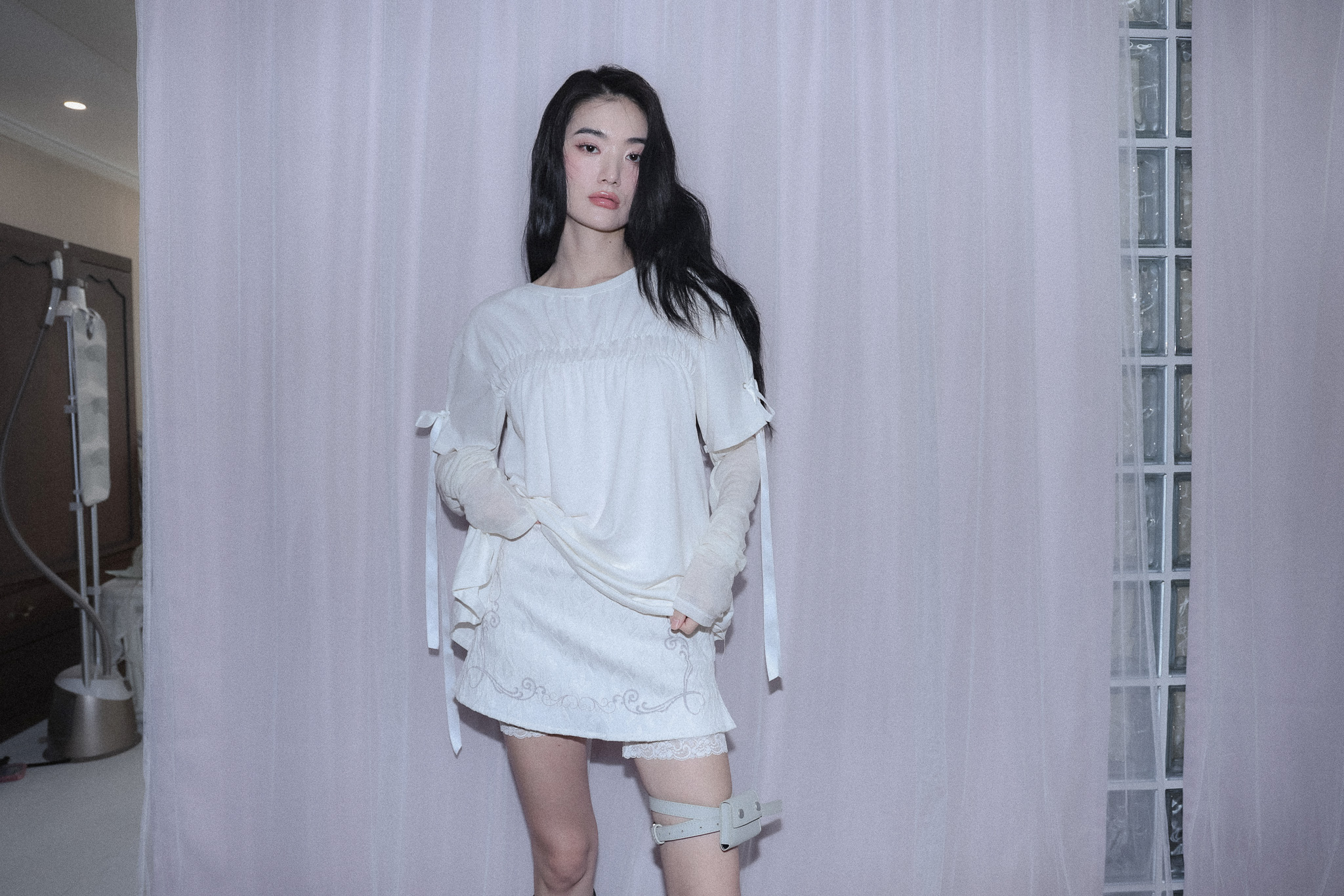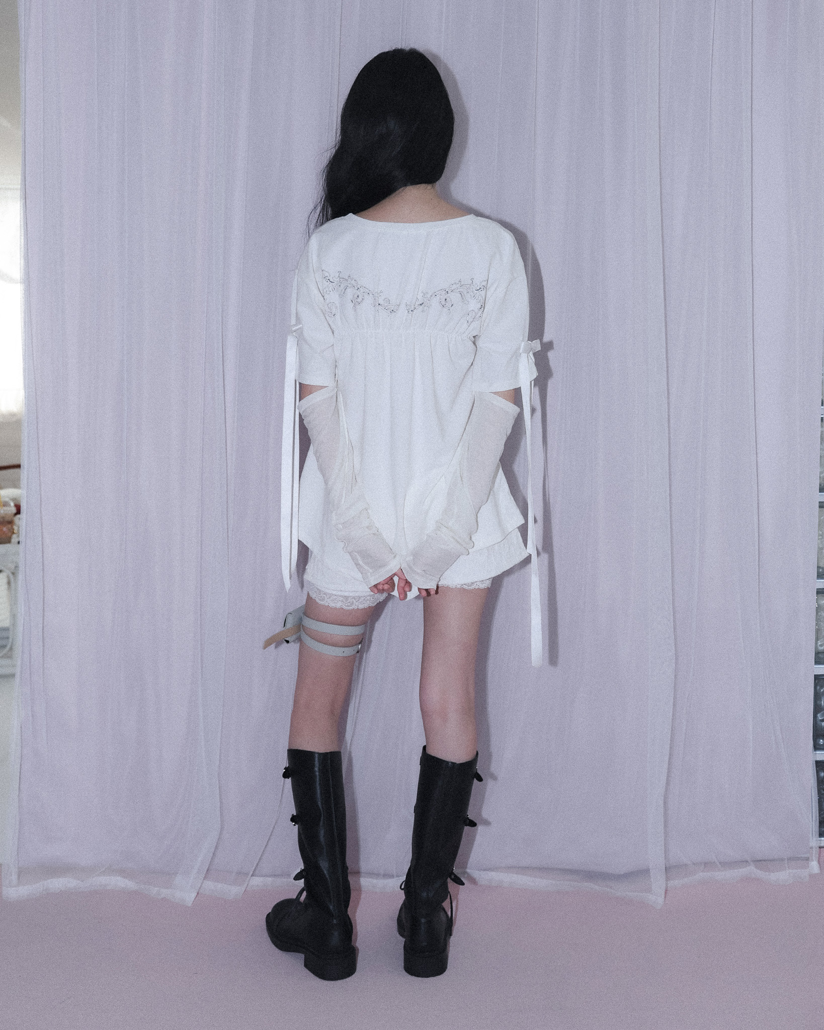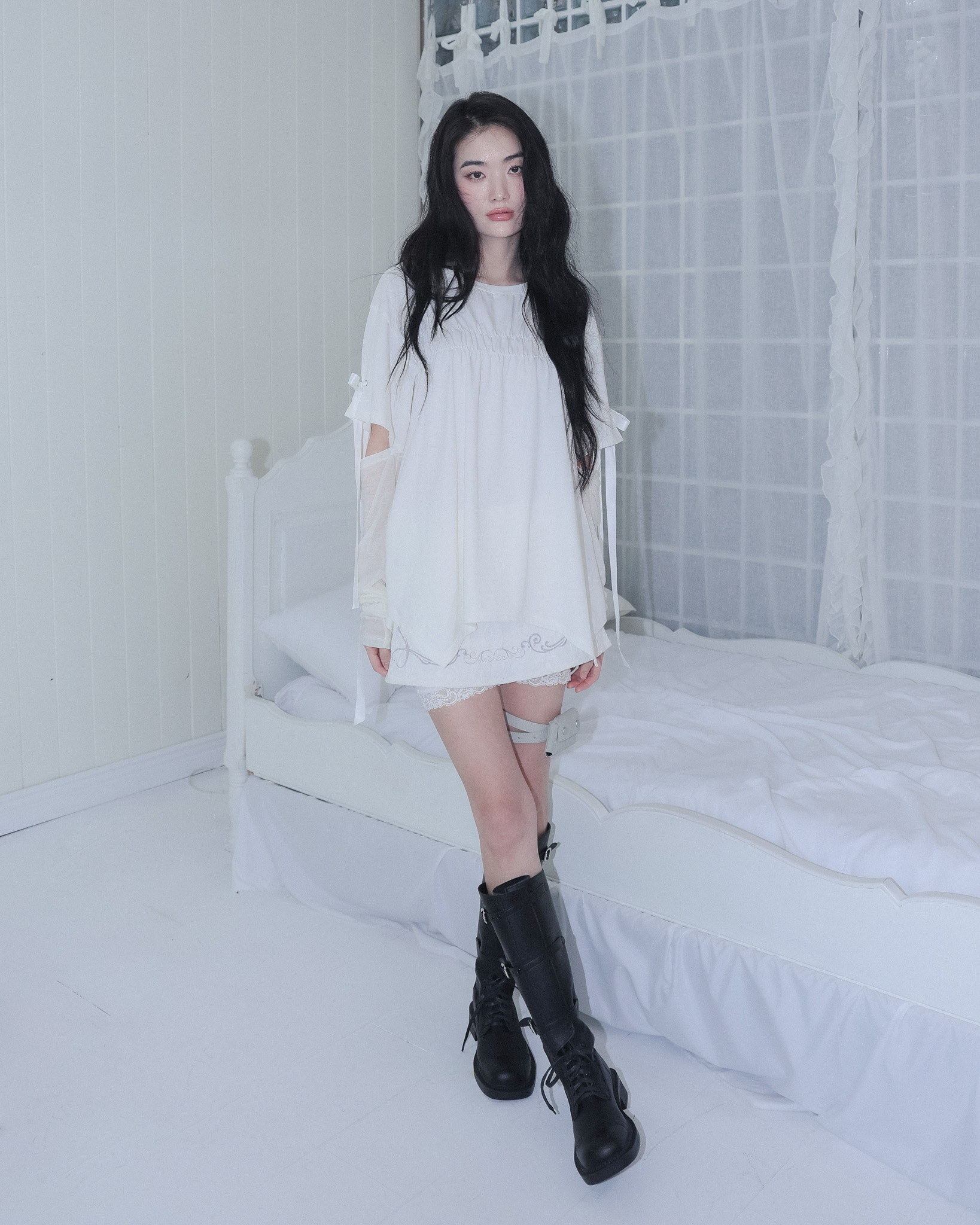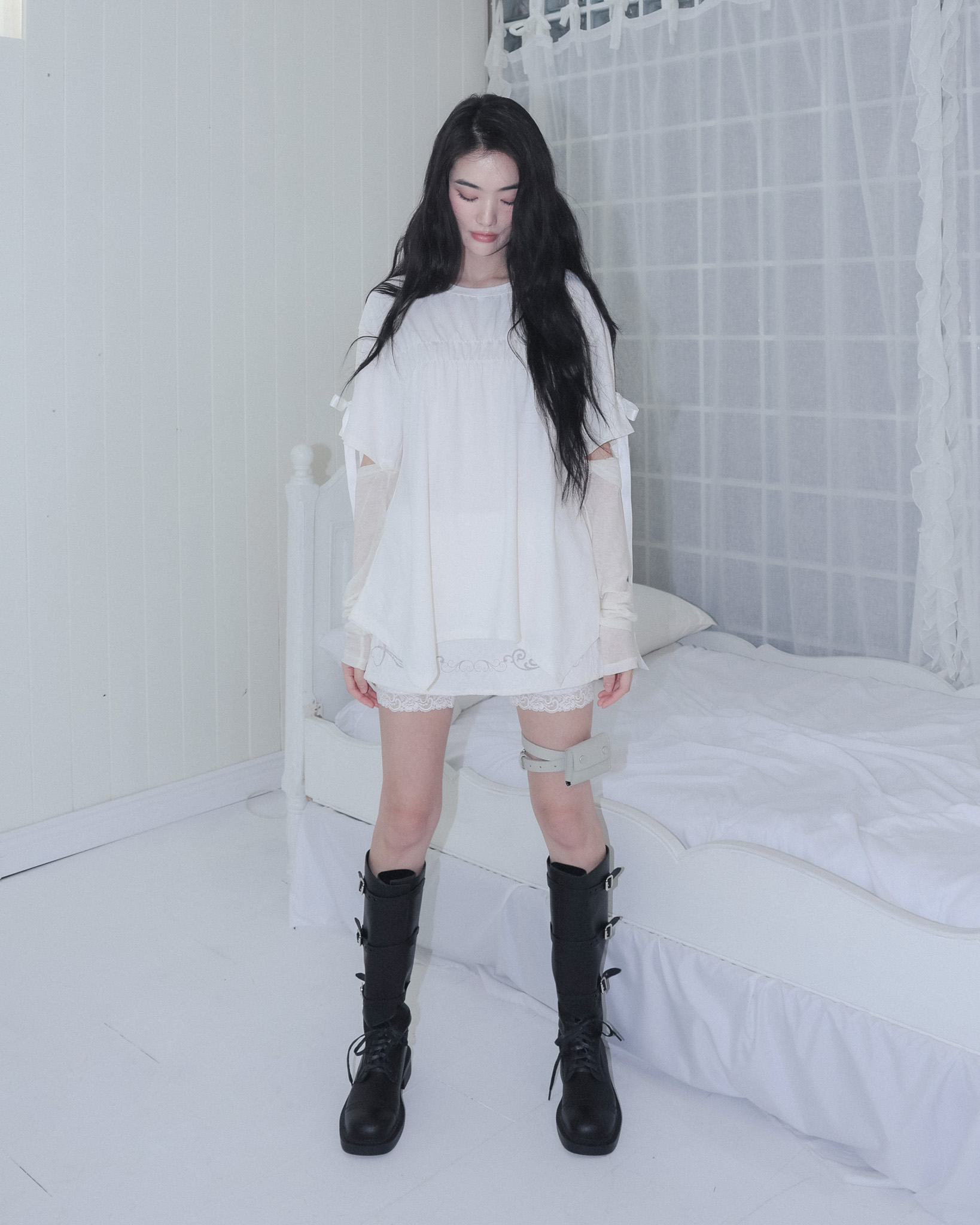 - 앞 뒤 셔링 / 뒷판 엔틱한 문양의 디지털 프린팅