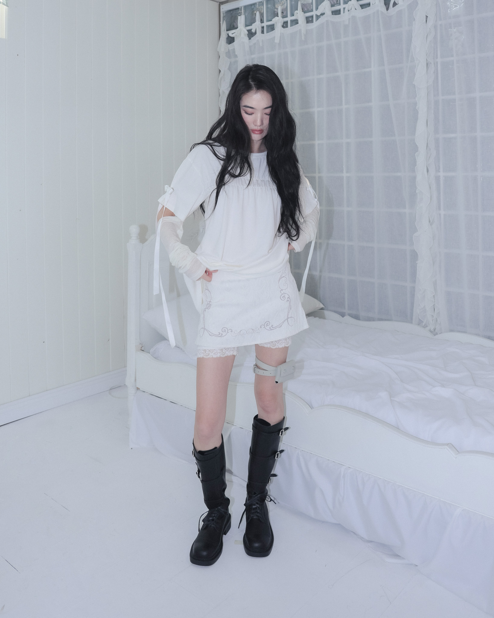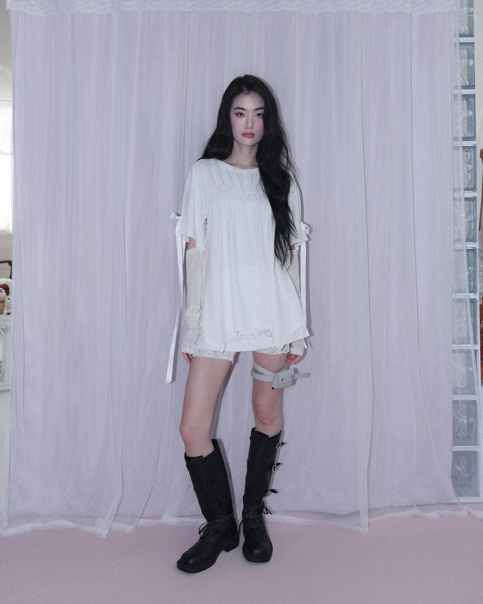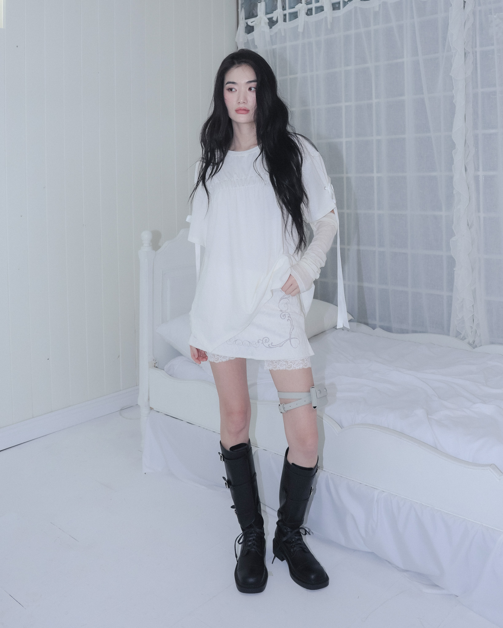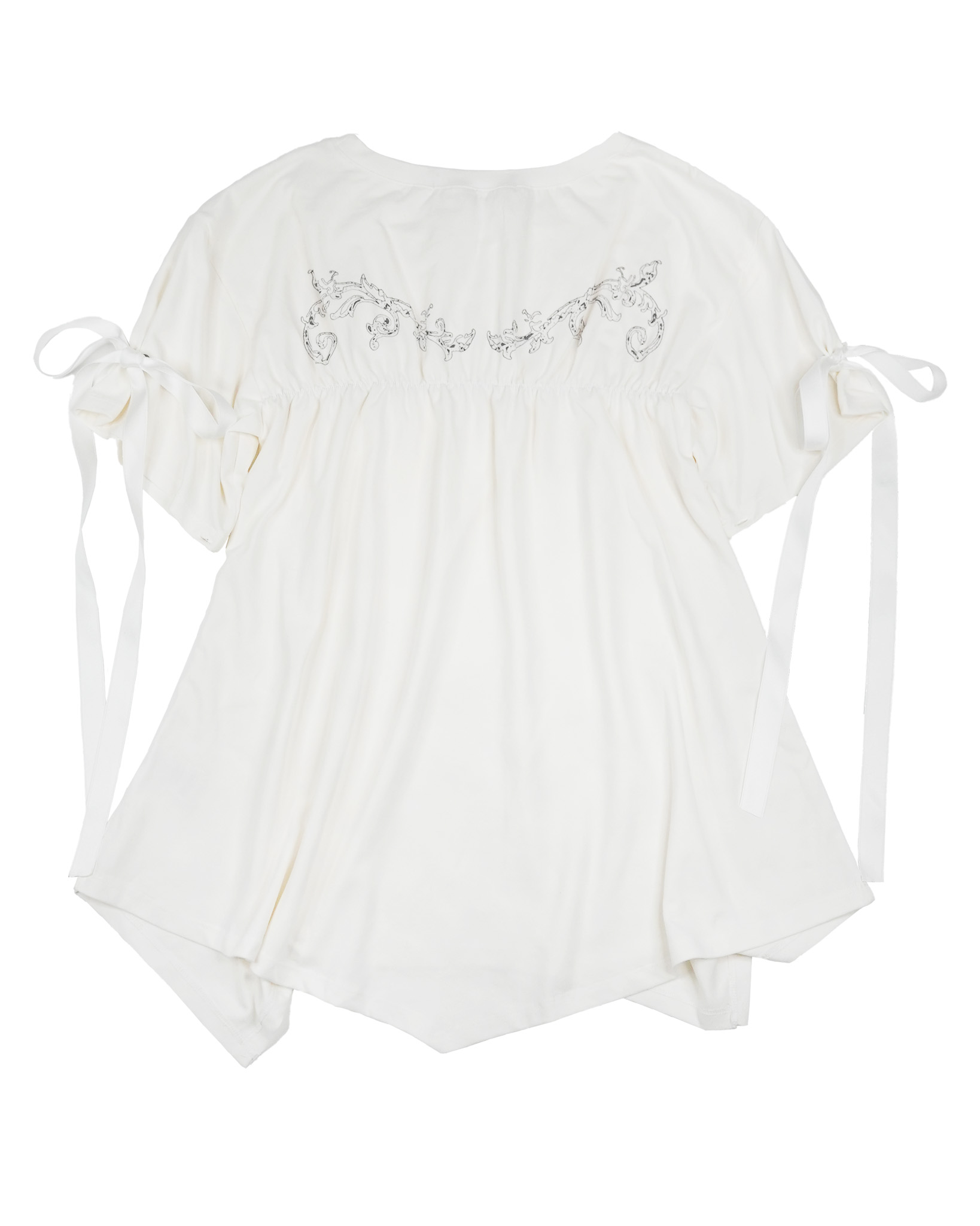 - 앞 뒤 셔링 / 뒷판 엔틱한 문양의 디지털 프린팅