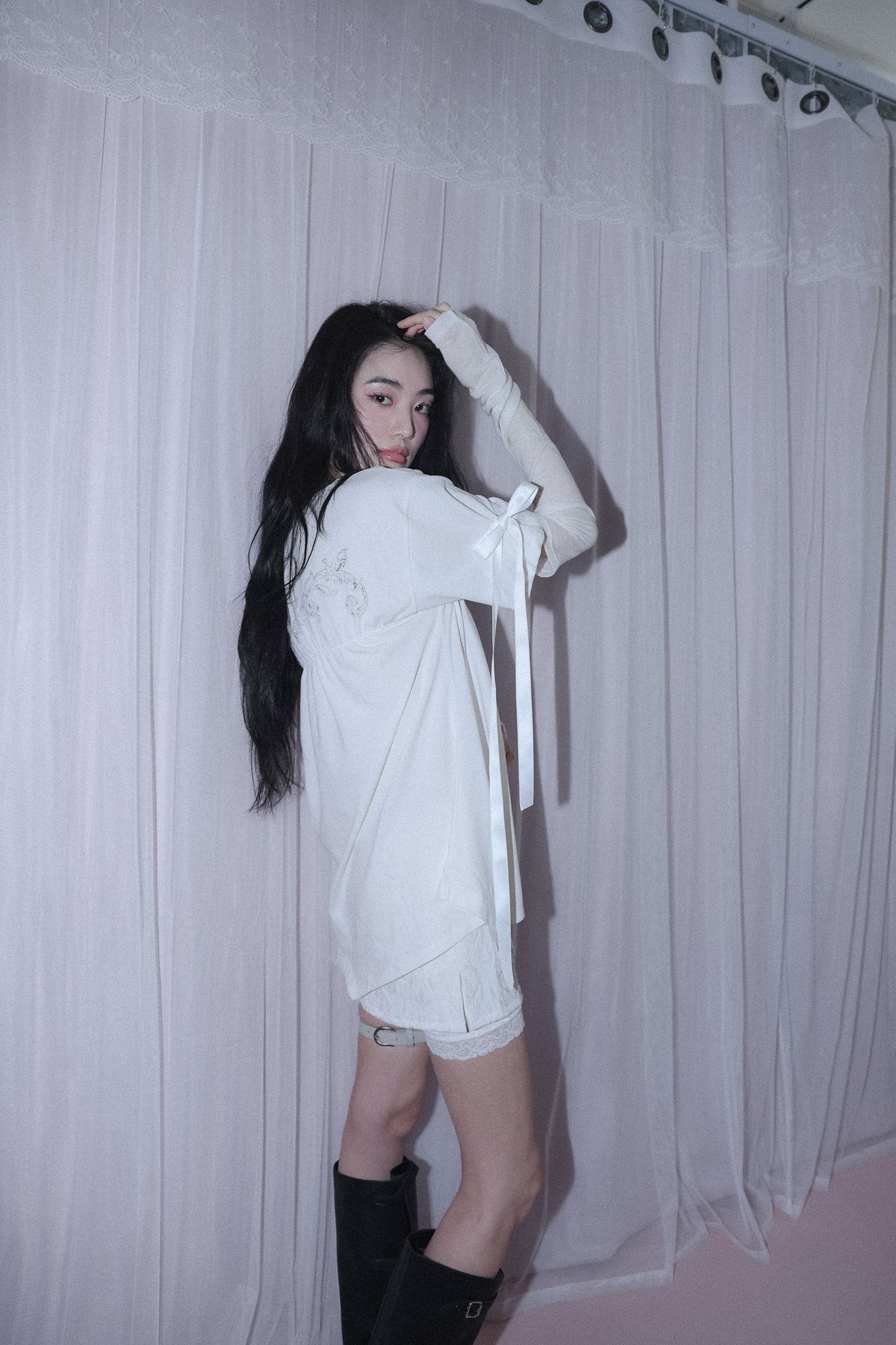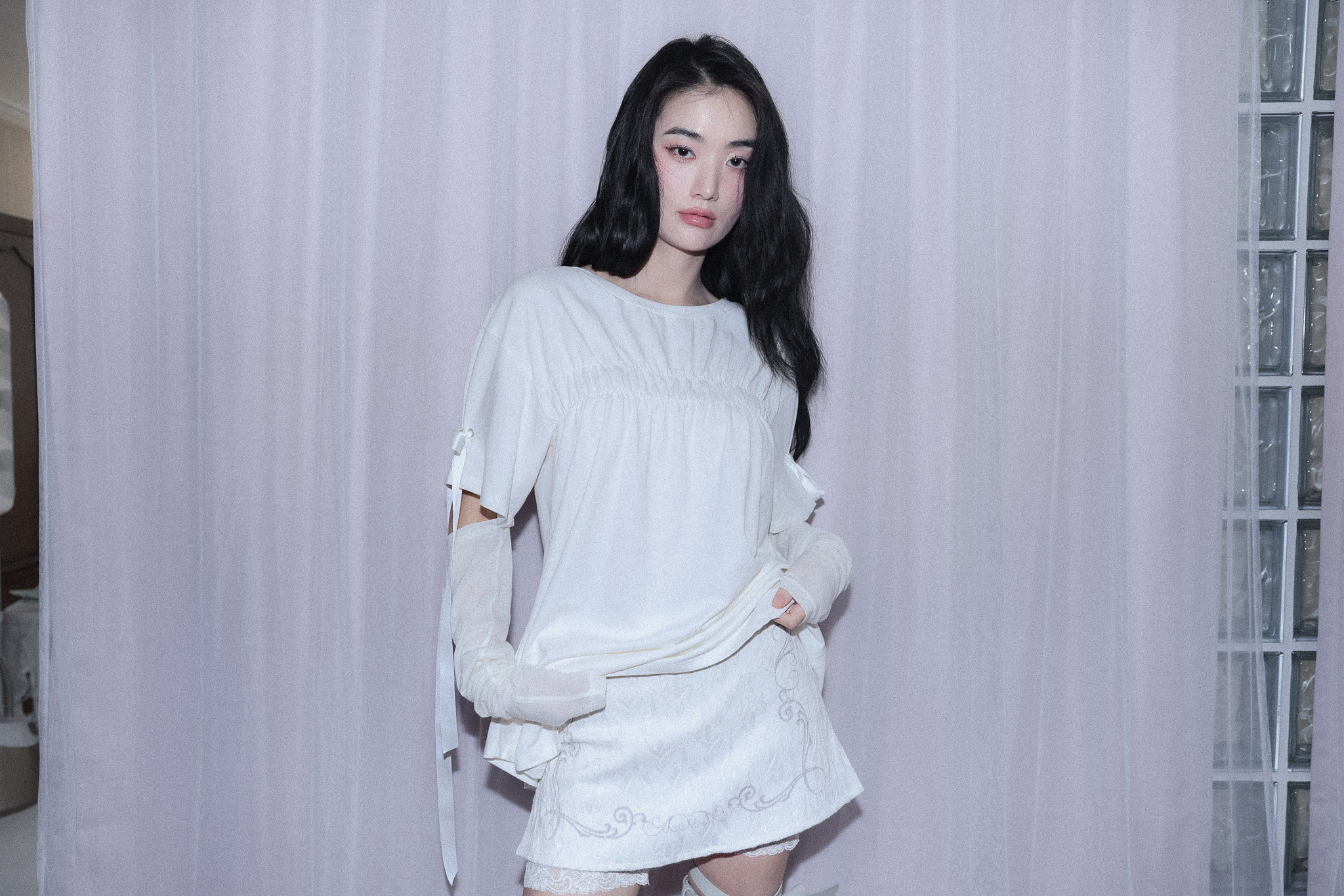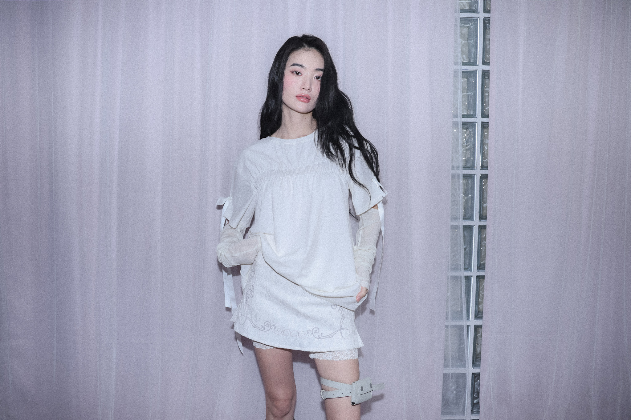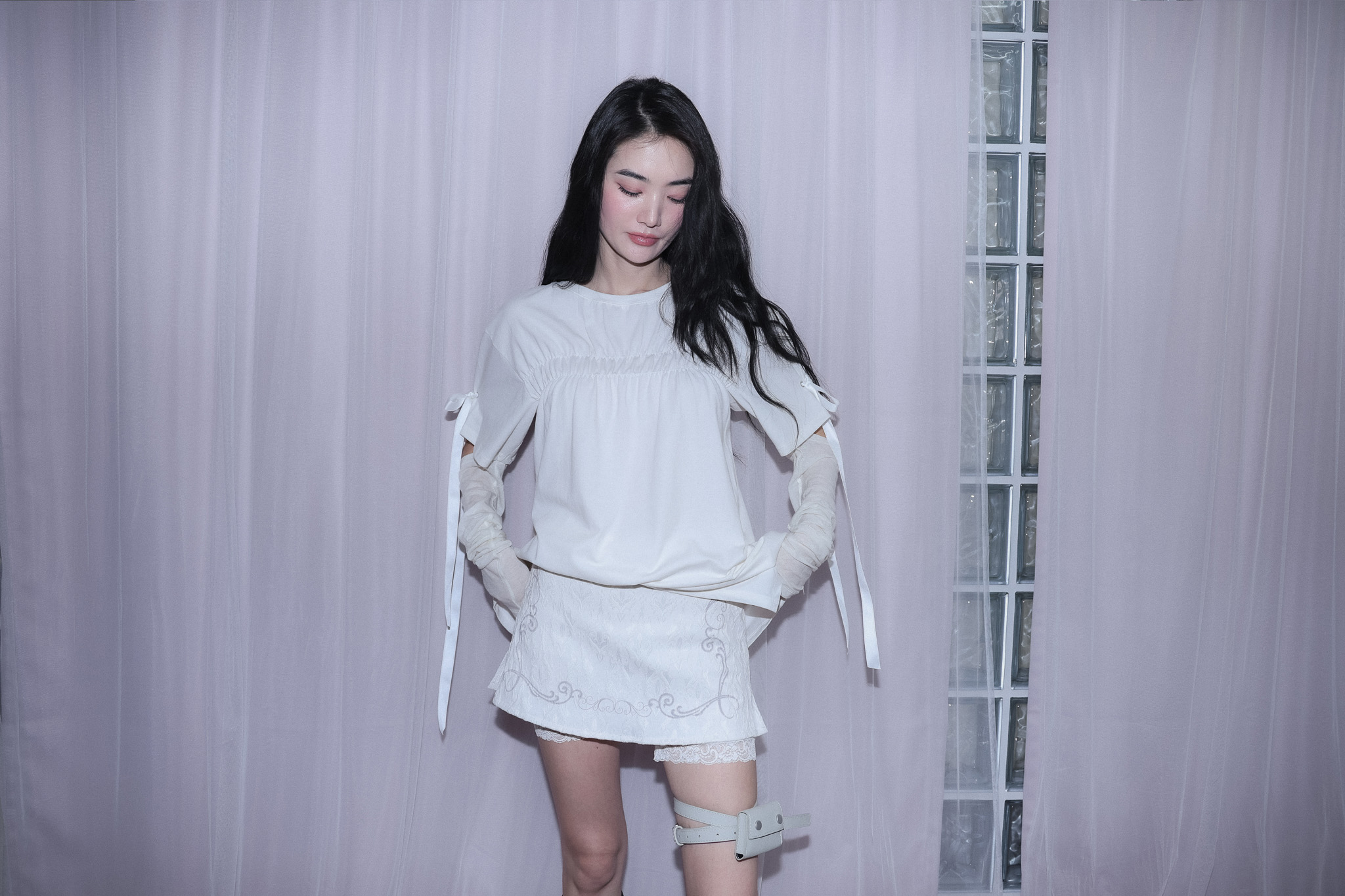 - 앞 뒤 셔링 / 뒷판 엔틱한 문양의 디지털 프린팅