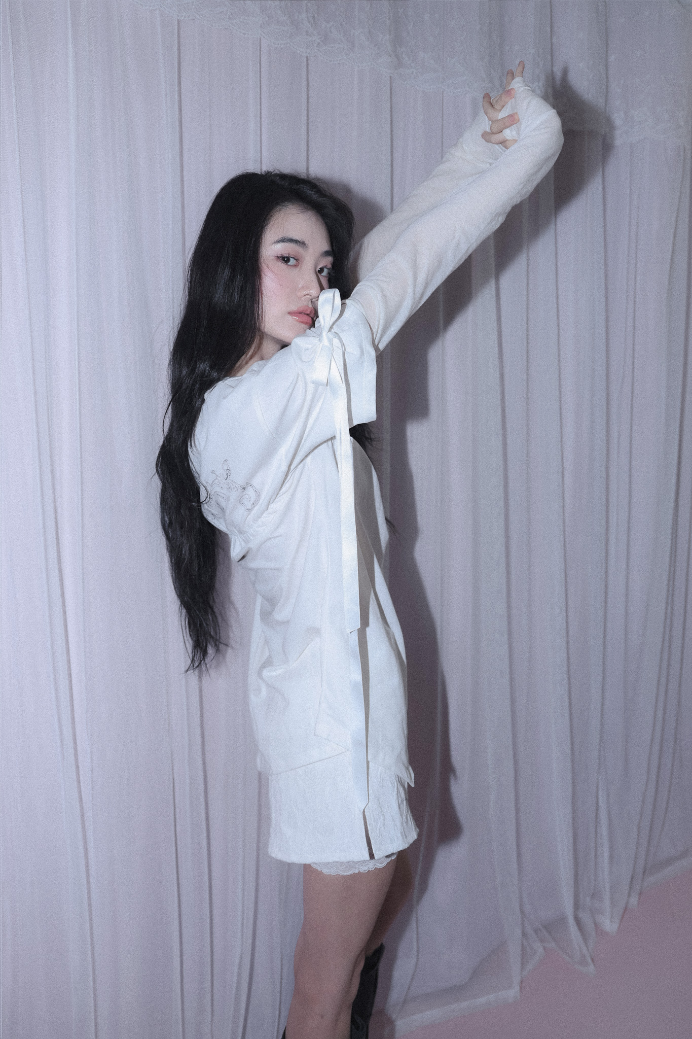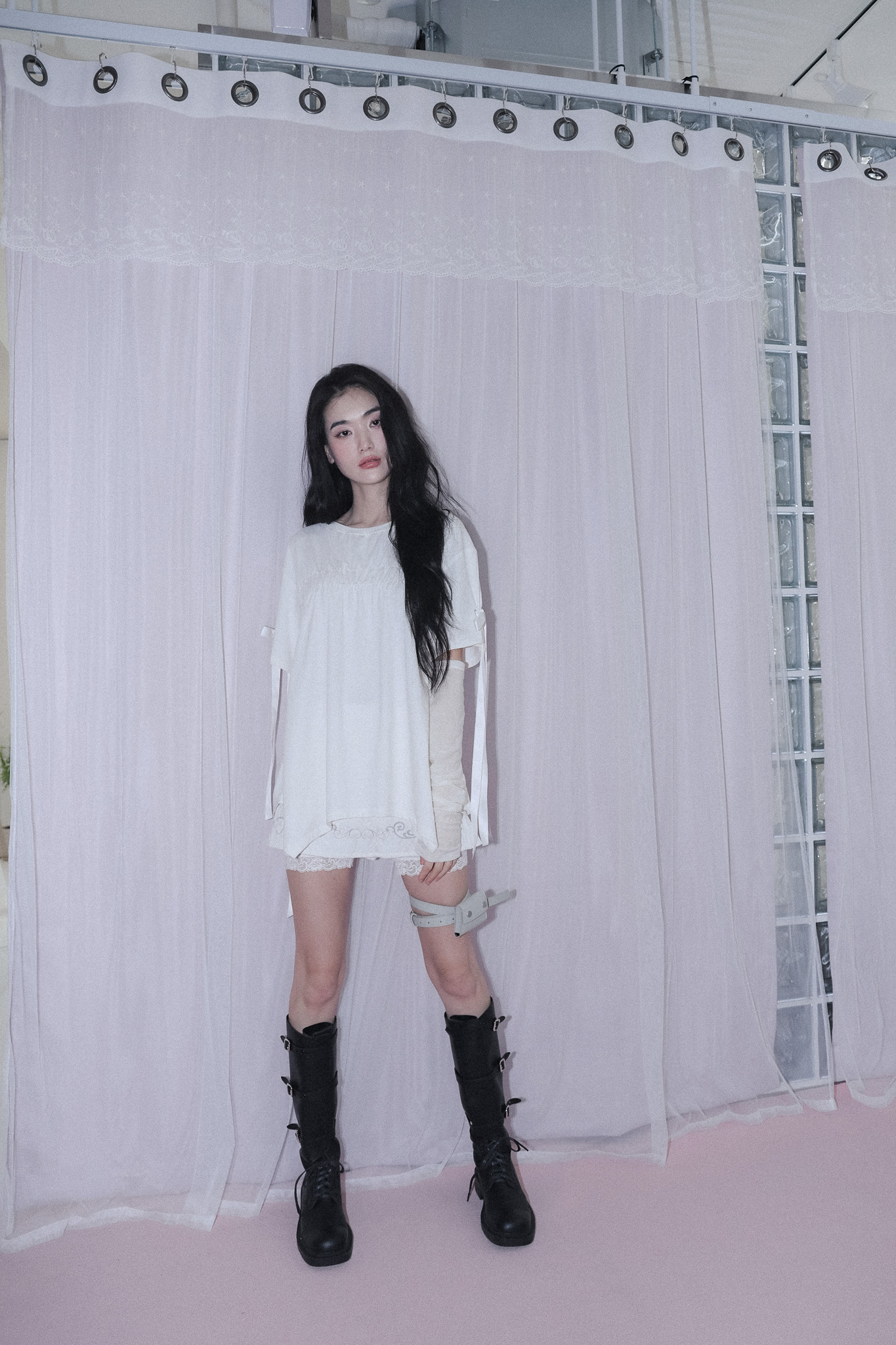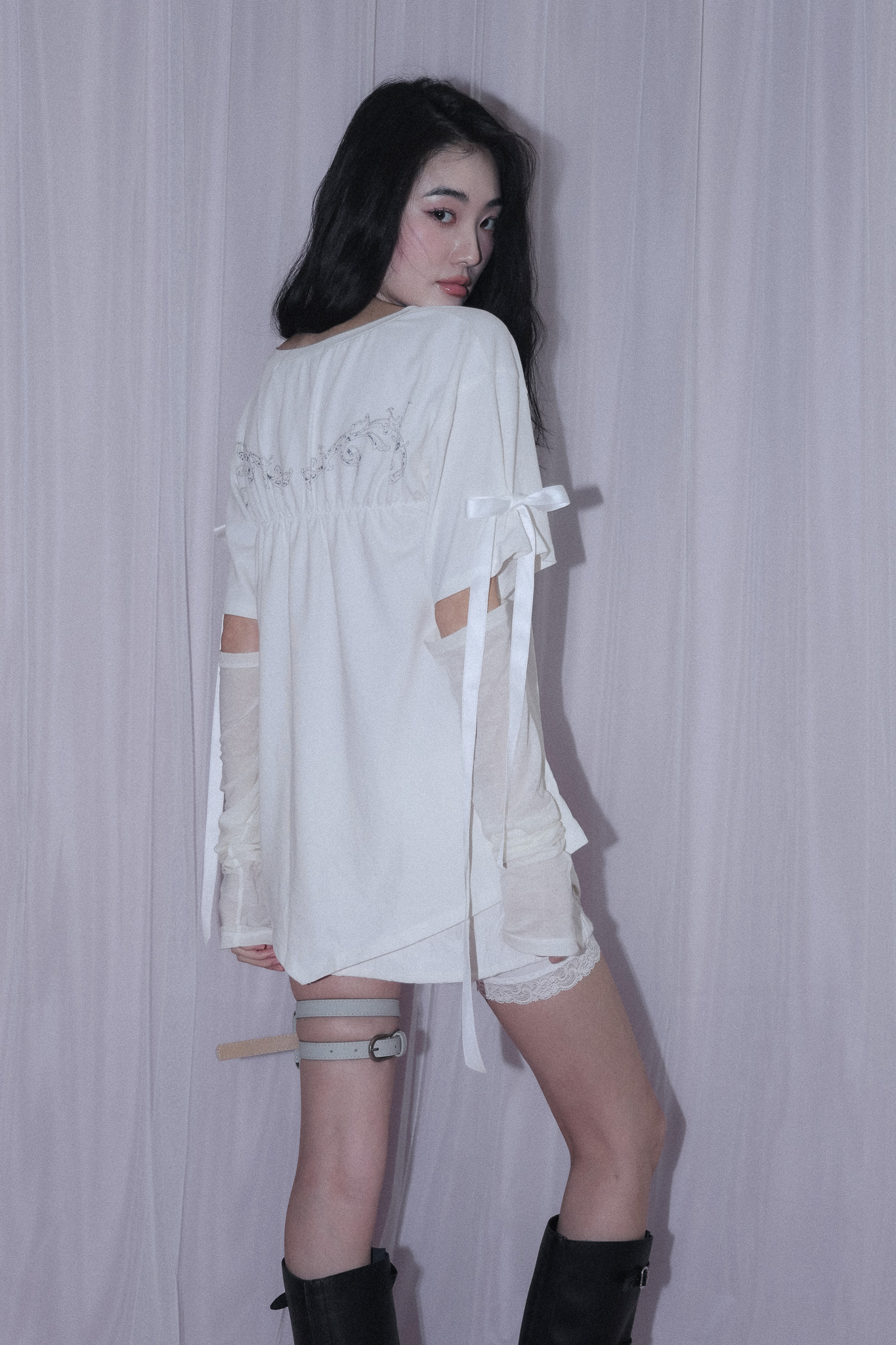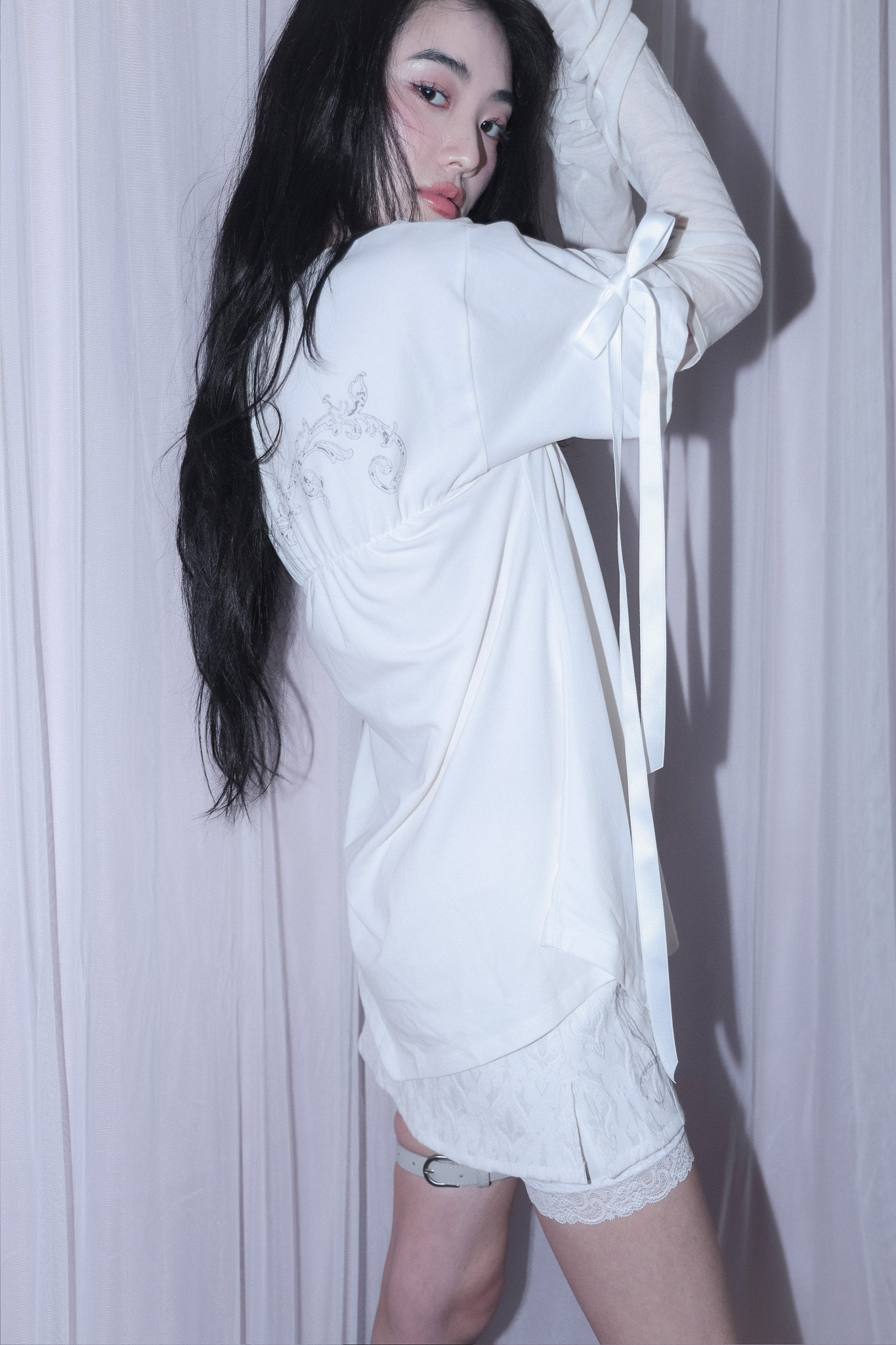- 앞 뒤 셔링 / 뒷판 엔틱한 문양의 디지털 프린팅