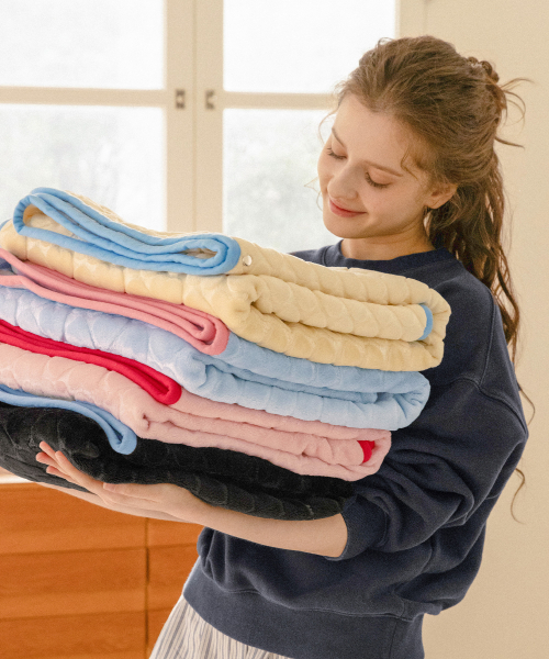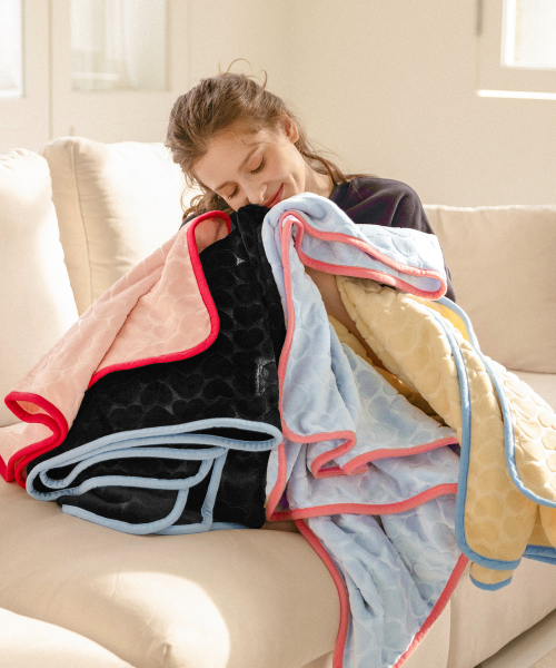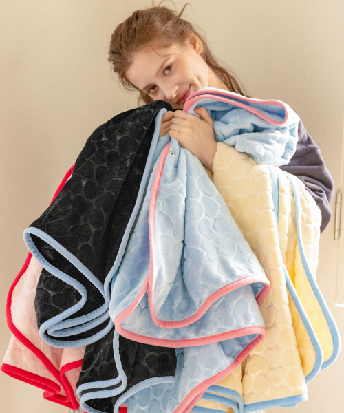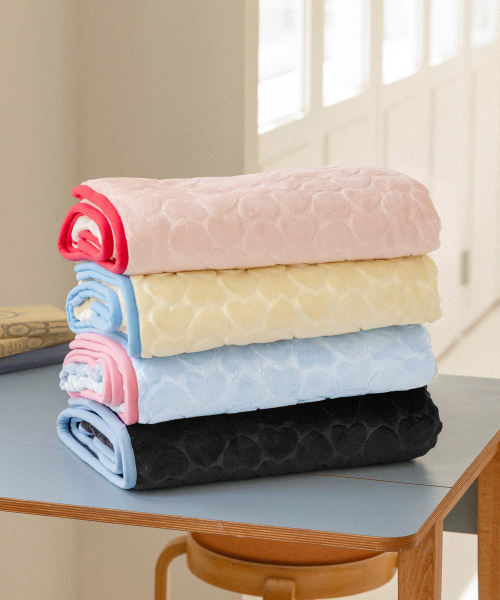 [패키지세트] 하트 엠보 극세사 라벨 담요 4컬러