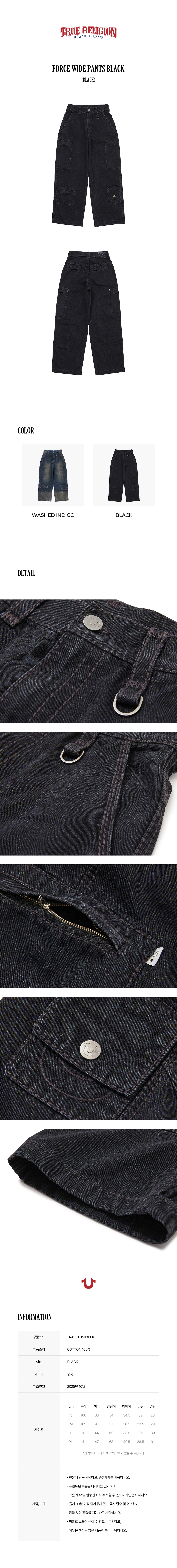 트루릴리젼(TRUERELIGION)은 2002년 미국에서 설립된 프리미엄 데님 브랜드입니다. Big-T, Super-T로 대표되는 스티치와 더불어 높은 퀄리티의 핏과 완성도를 지향합니다.